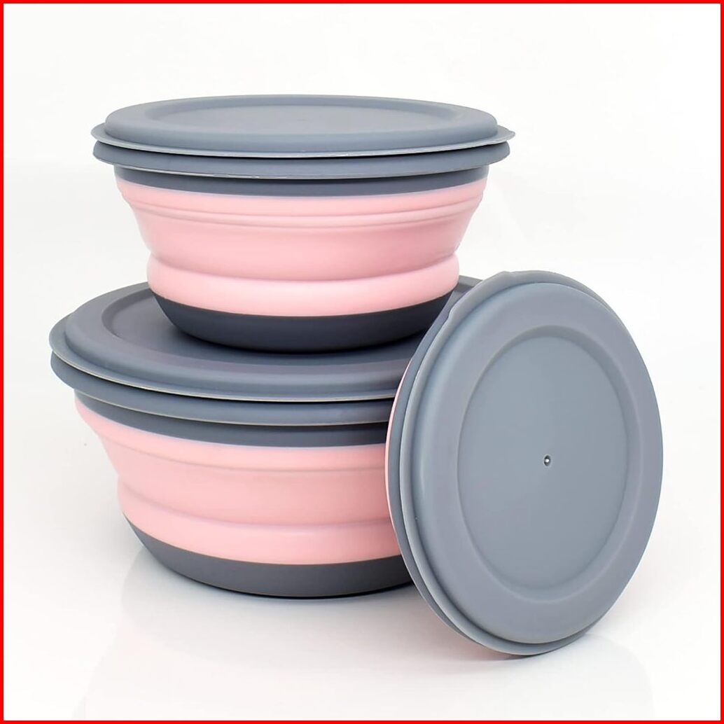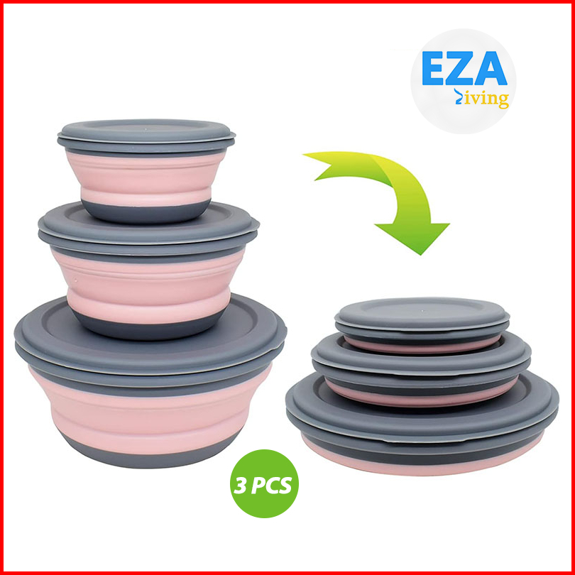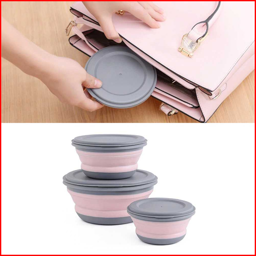 3 Pcs Mangkok Kotak Tempat Makan Lipat Portable Travel Camping Silikon Tahan Panas Foldable Healthy Bento Lunch Box