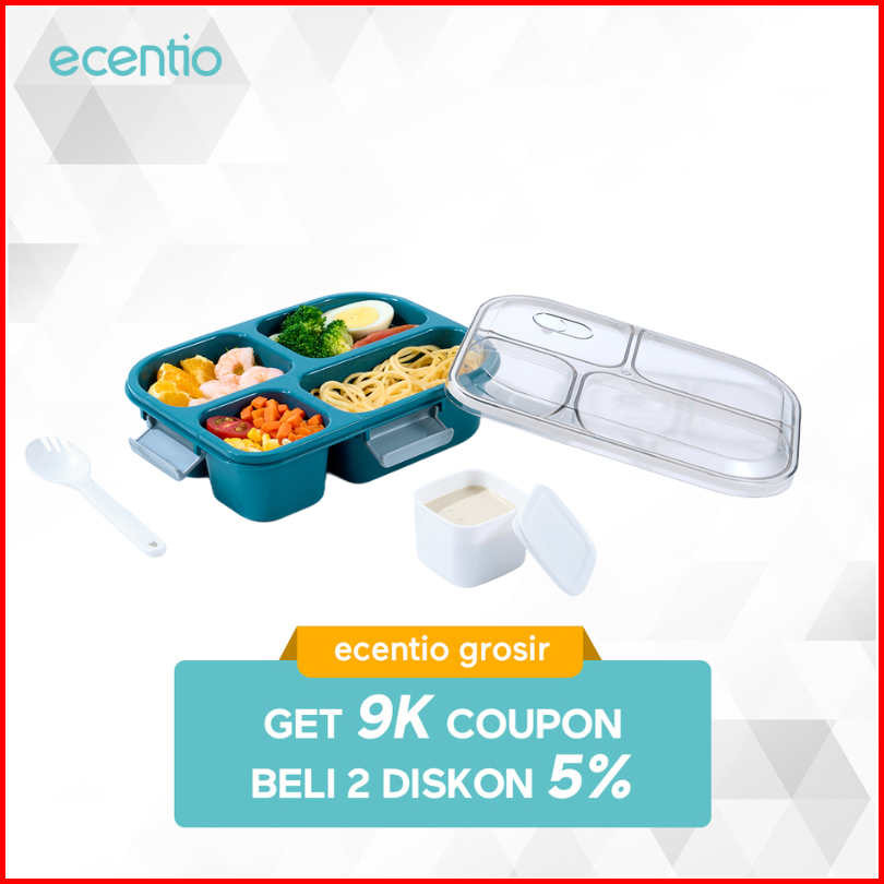 Ecentio Lunch Box 4 Grid Kotak Bento Pp Tempat Bekal Lunch Box Anti Tumpah 1100ml Kotak Bekal Makan Anti Tumpah