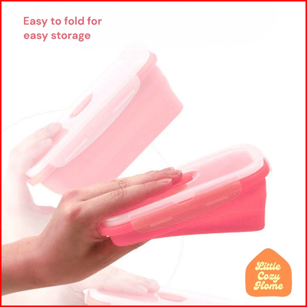 Foldable Lunch Box Kotak Makan Lipat Satuan Eceran Expandable Bahan Container Silicone Lunch Box Wadah Makan Lipat Silik