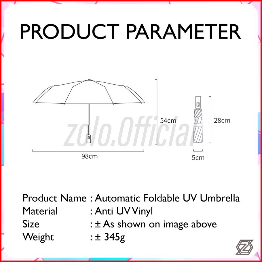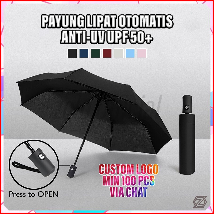 Zolo Payung Lipat Otomatis Anti Uv Upf 50 Tombol Otomatis Buka Souvenir Custom Logo