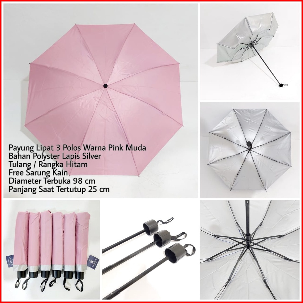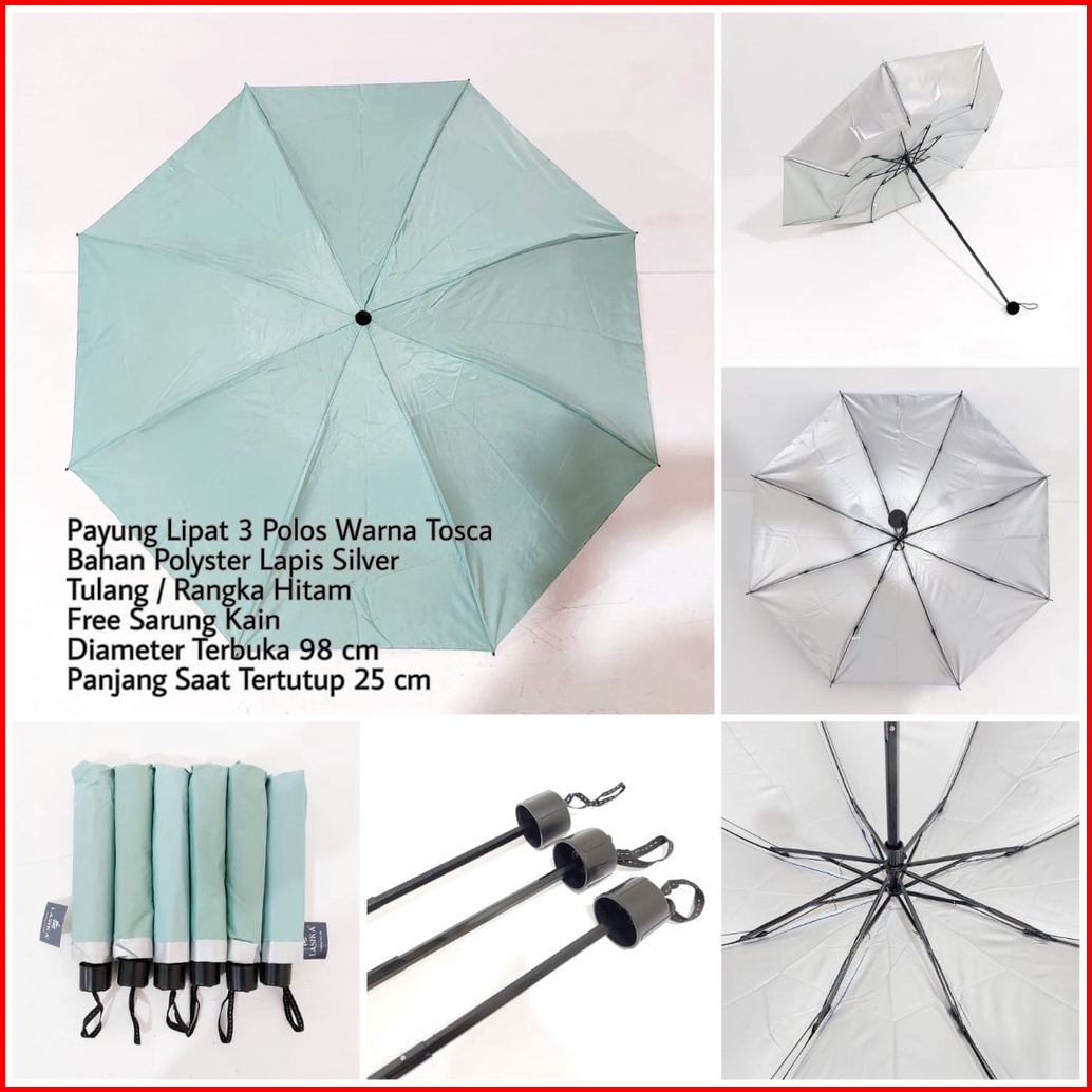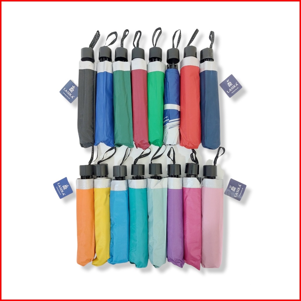 Payung Lipat 3 Polos Lasika Type 009 Bahan Polyster Lapis Silver Premium
