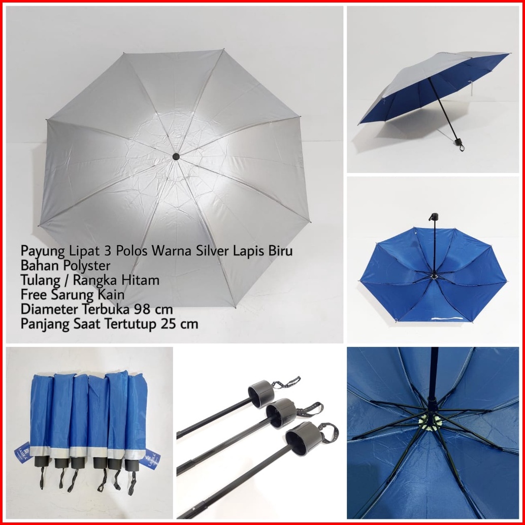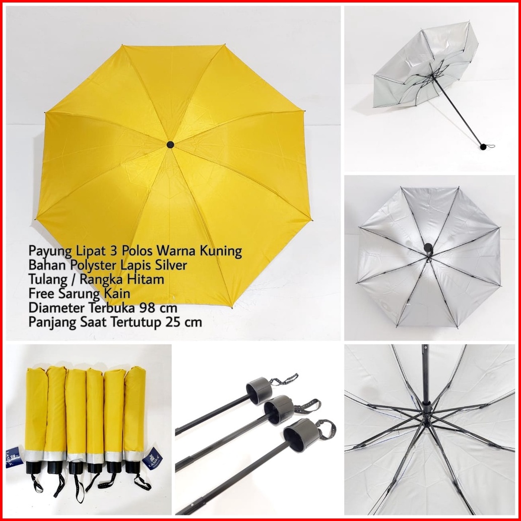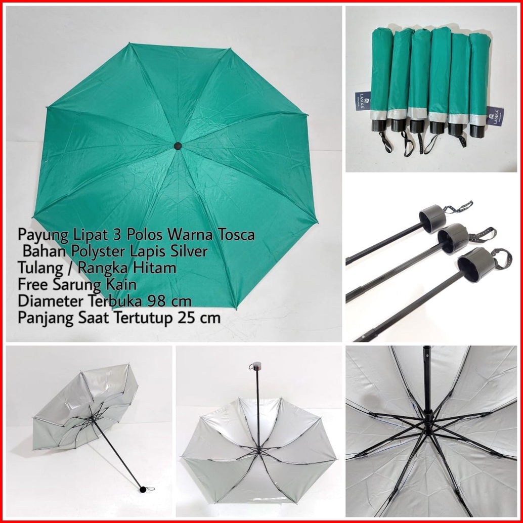 Payung Lipat 3 Polos Lasika Type 009 Bahan Polyster Lapis Silver Premium