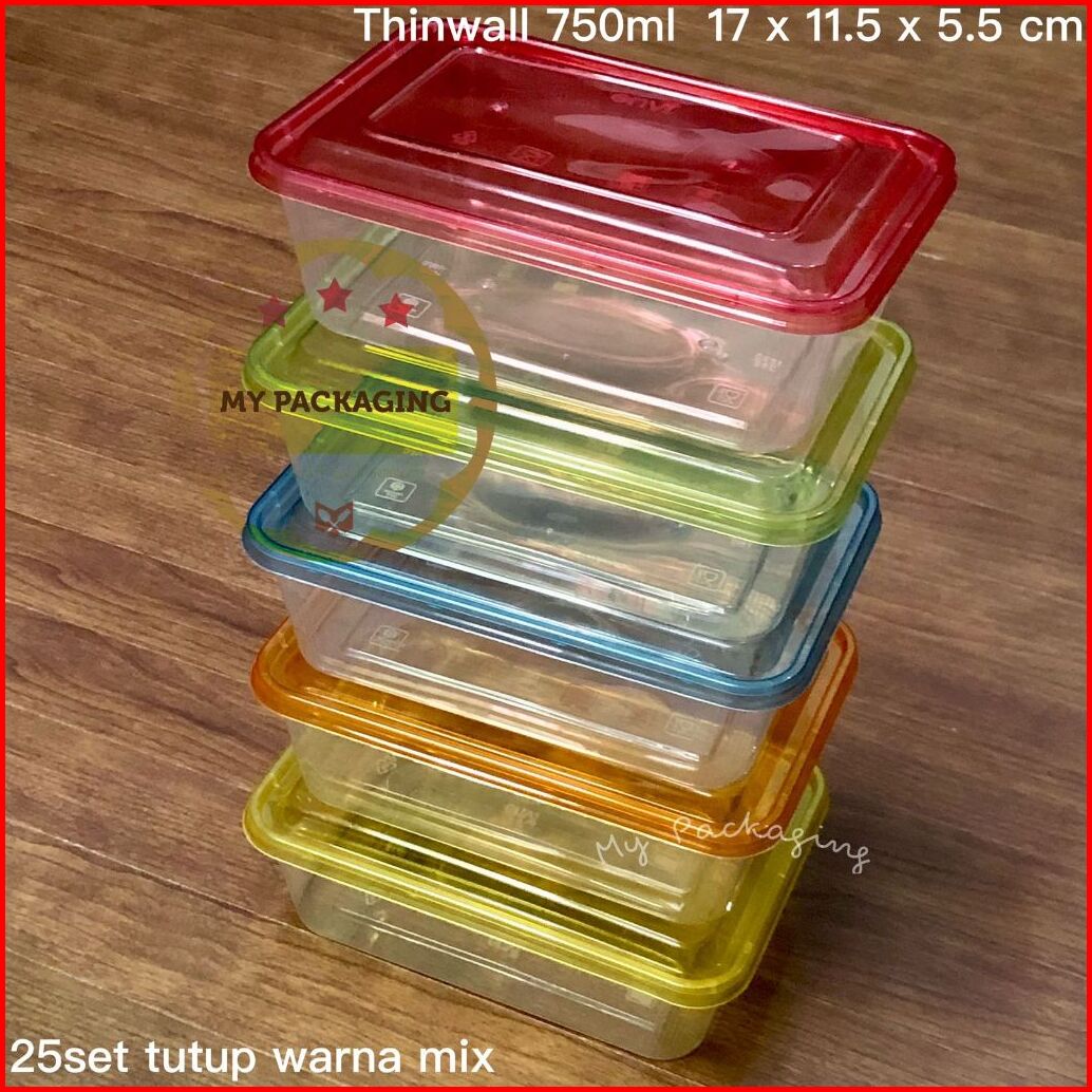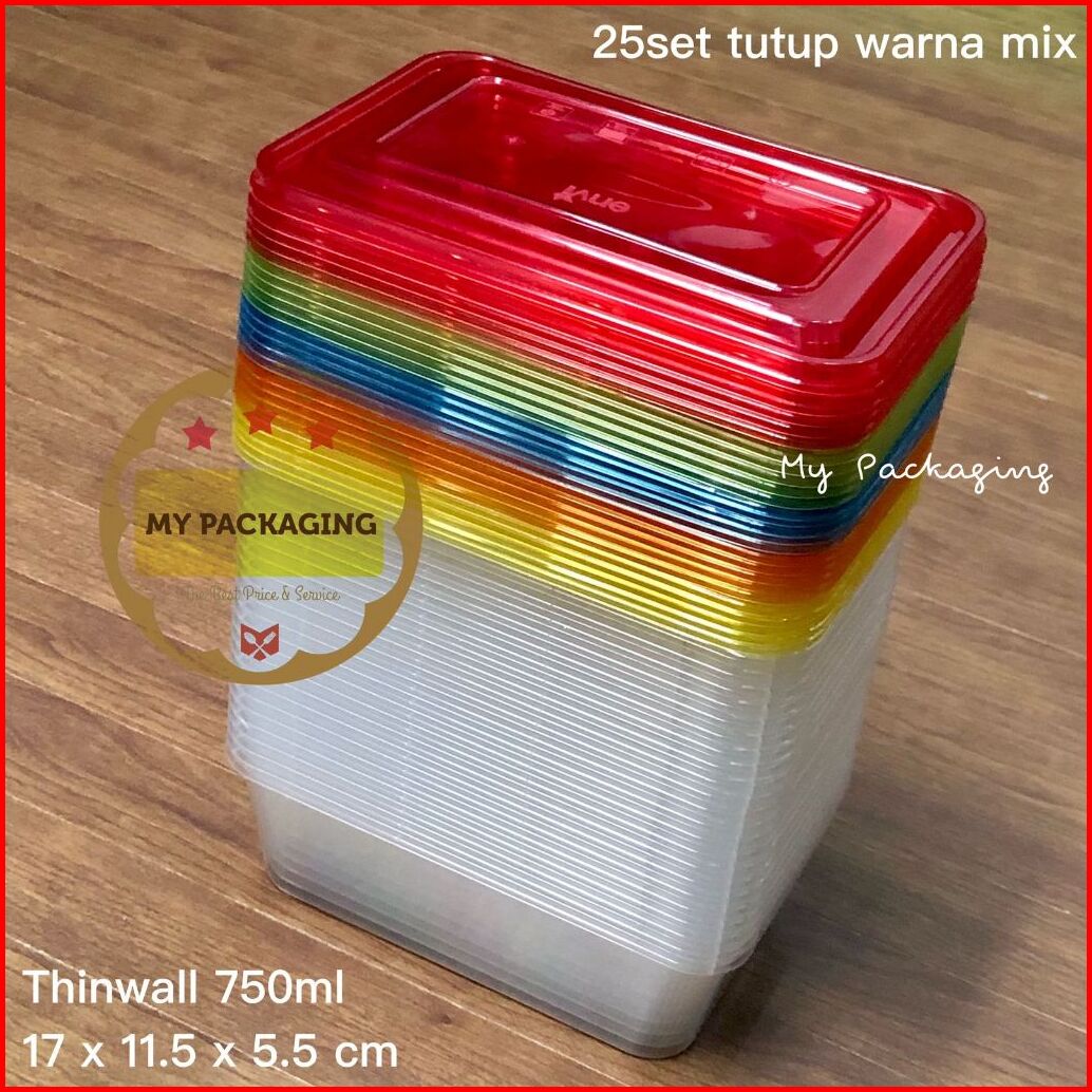 Food Box 750 Ml Warna Dapat 25set Lunch Box Food Container Kotak Makan Thinwall