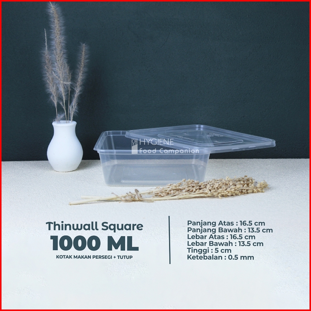 Kotak Makan Plastik 1000ml Thinwall Persegi