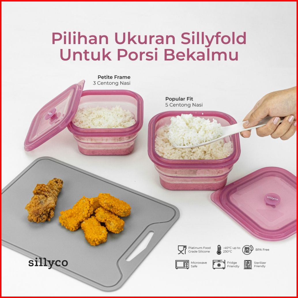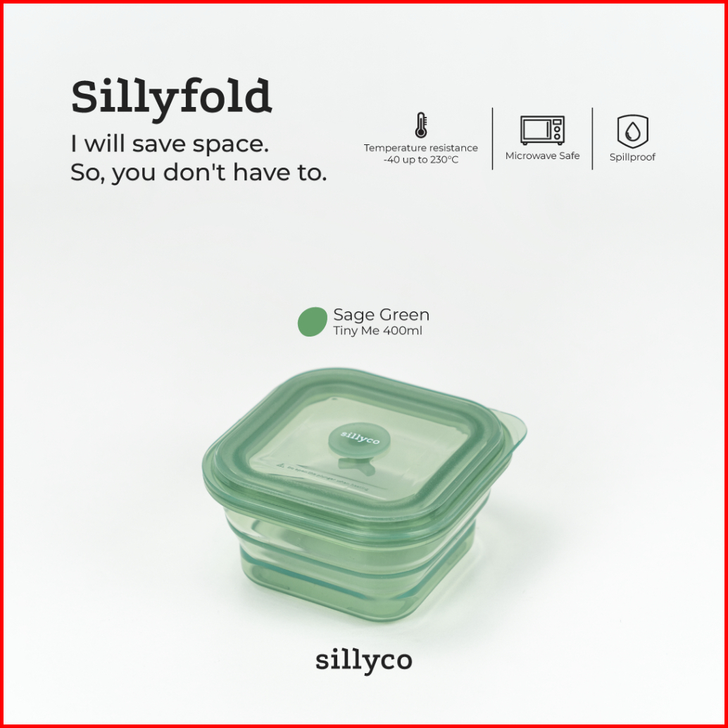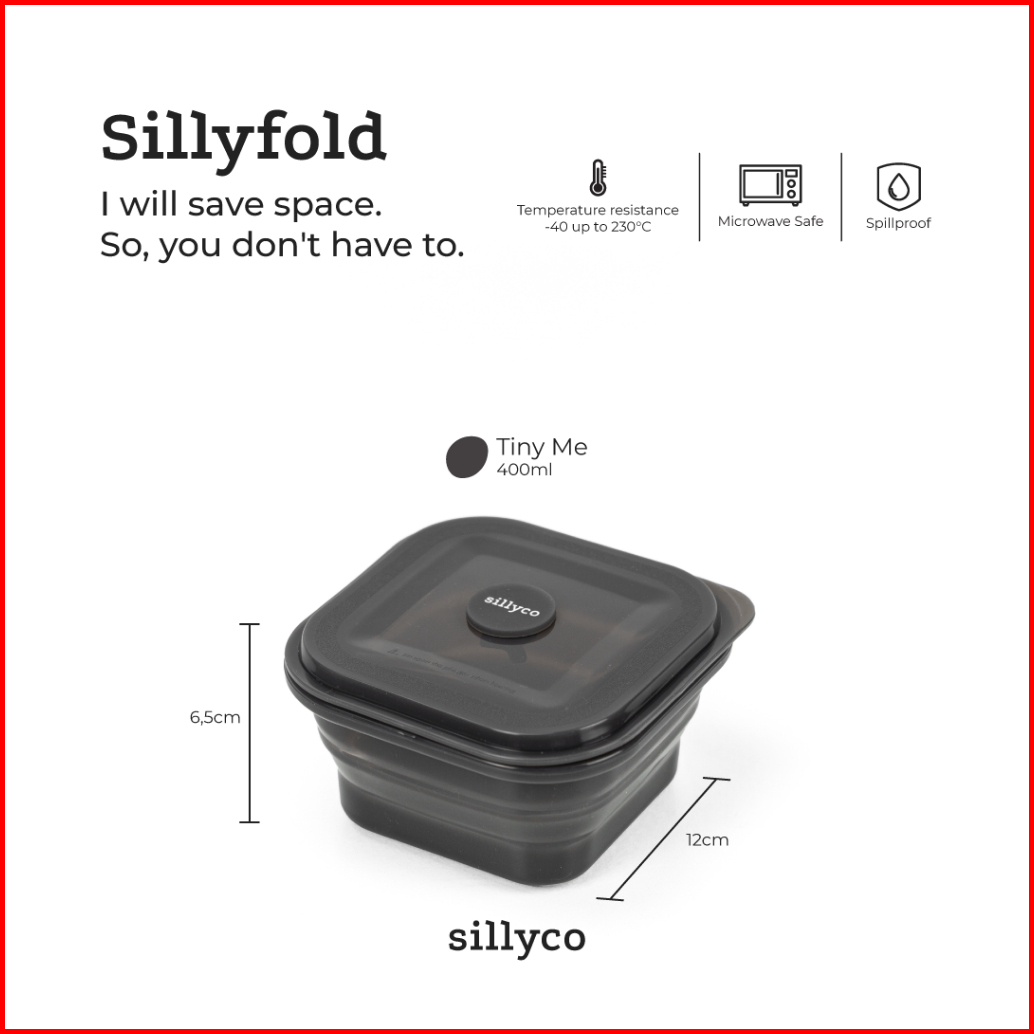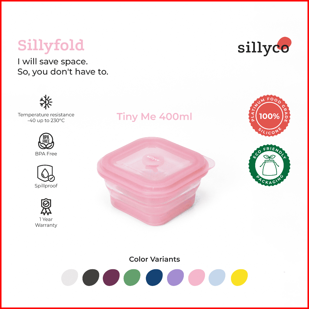Sillyco-sillyfold Square Tiny 400 Ml-100 Platinum Food Grade Silicone Foldable Lunch Box Bpa Free