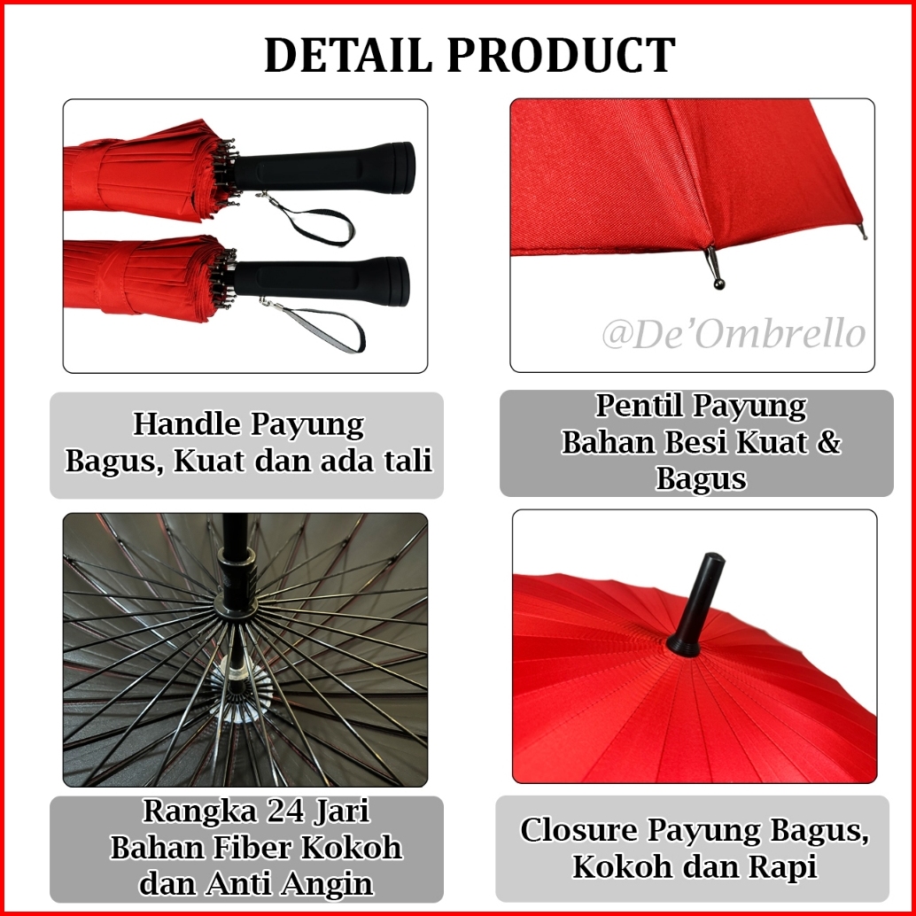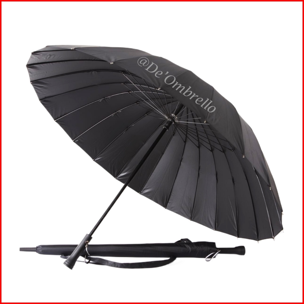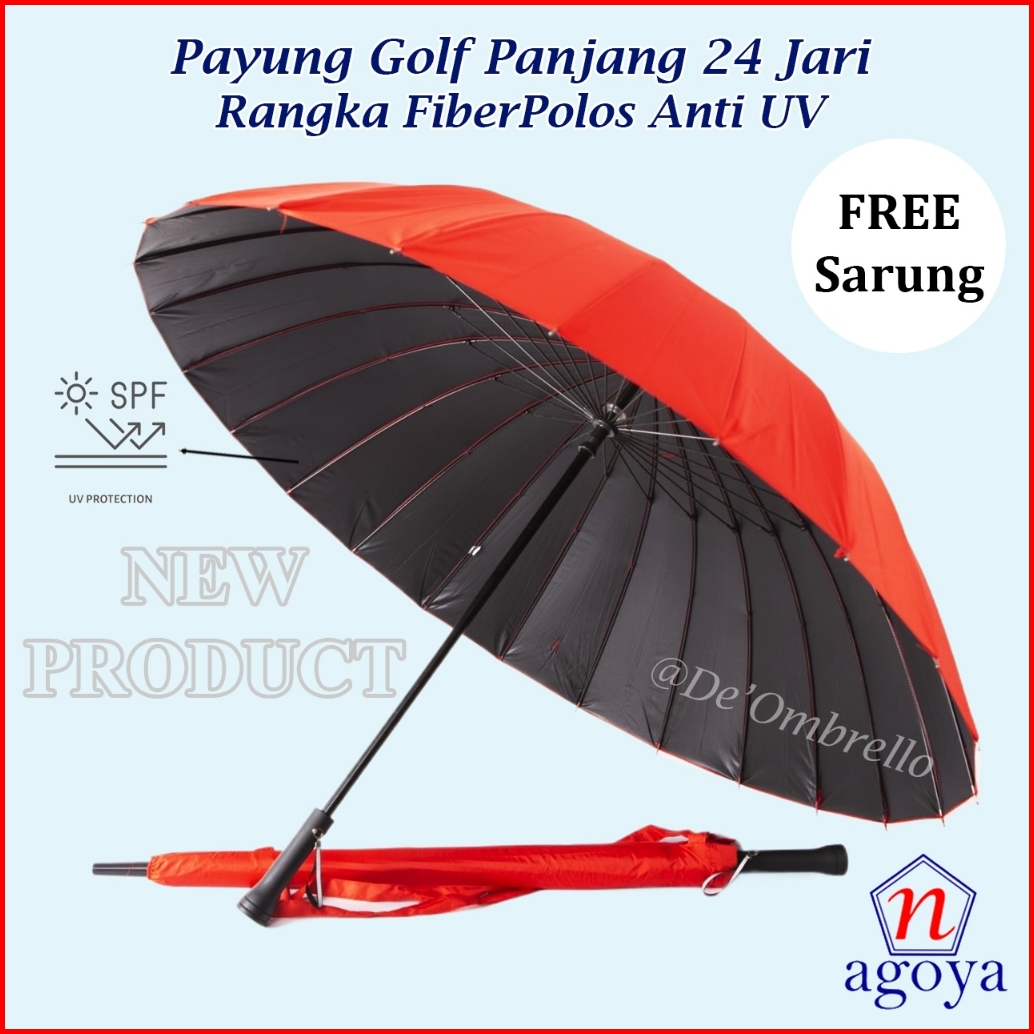 105 Payung Golf Panjang 24 Jari Rangka Fiber Polos Lapis Hitam Anti Uv Golf Polos Premium Quality