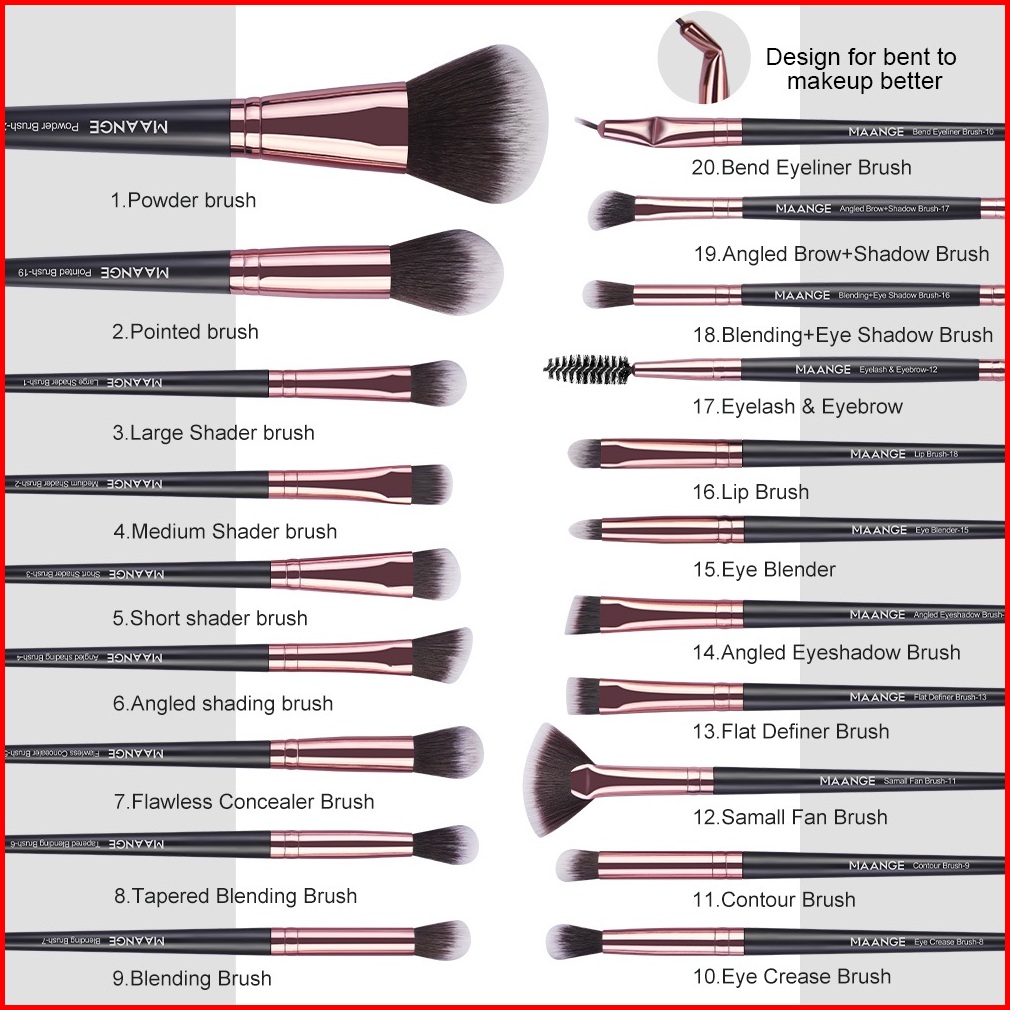 Maange 20 Pcs Set Brush Makeup Kuas Riasan Wajah Profesional Wajah Mata Penggunaan Riasan Sehari-hari 5748 0117