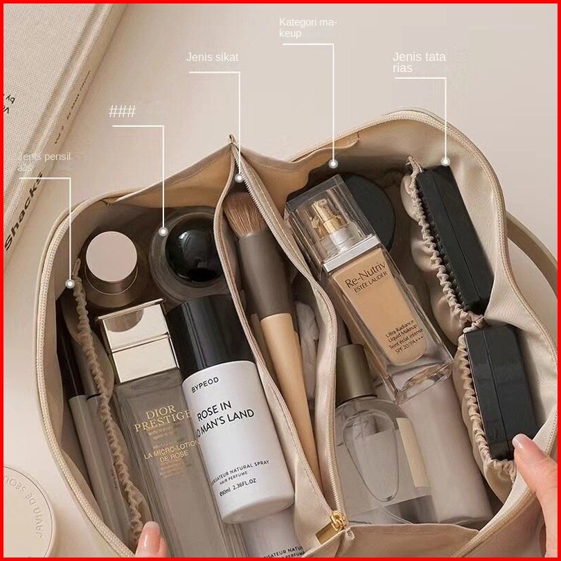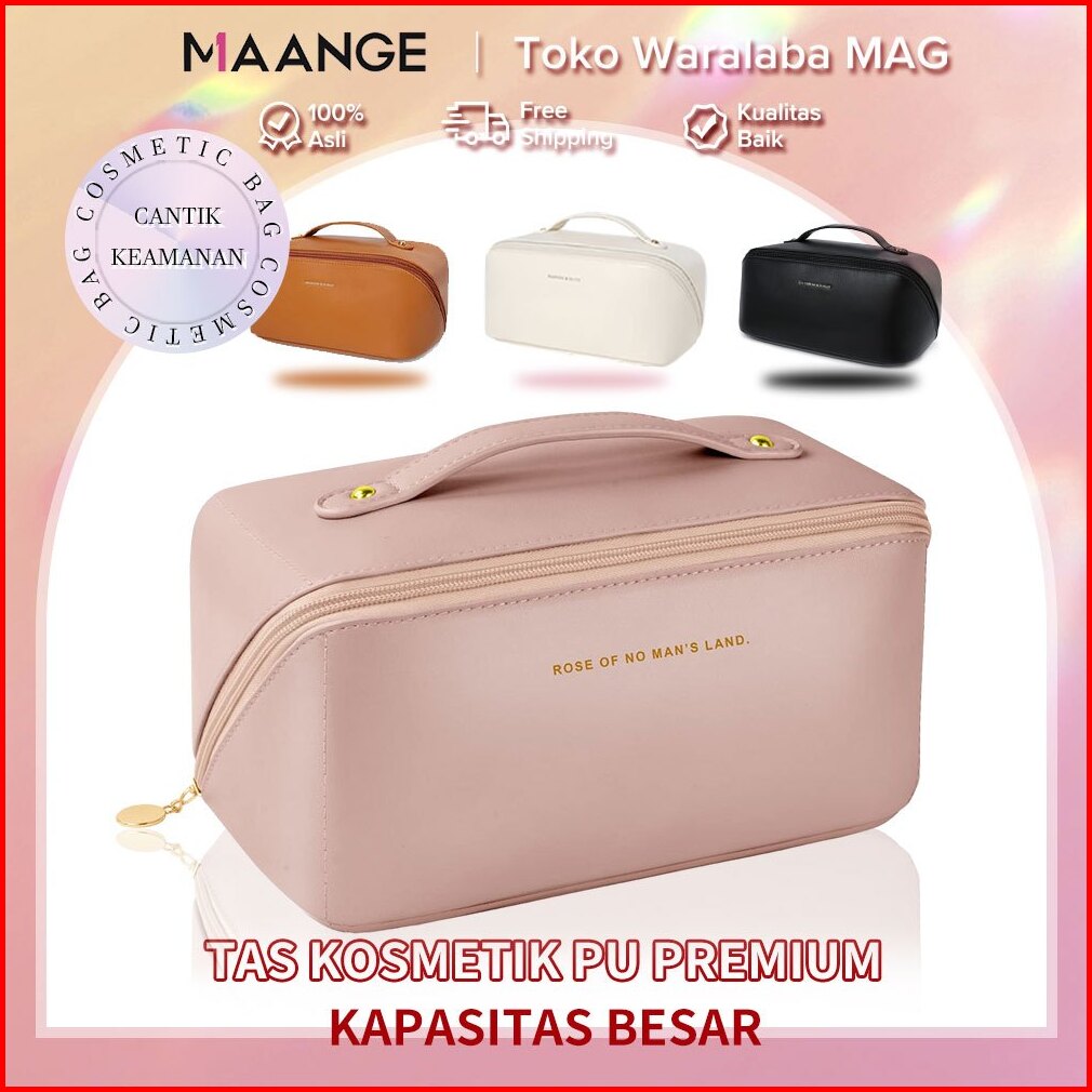 Maange Wanita Bantal Kulit Pu Tas Kosmetik Persegi Panjang Ritsleting Tas Rias Fashion Tas Tangan Portable Pouch Travel