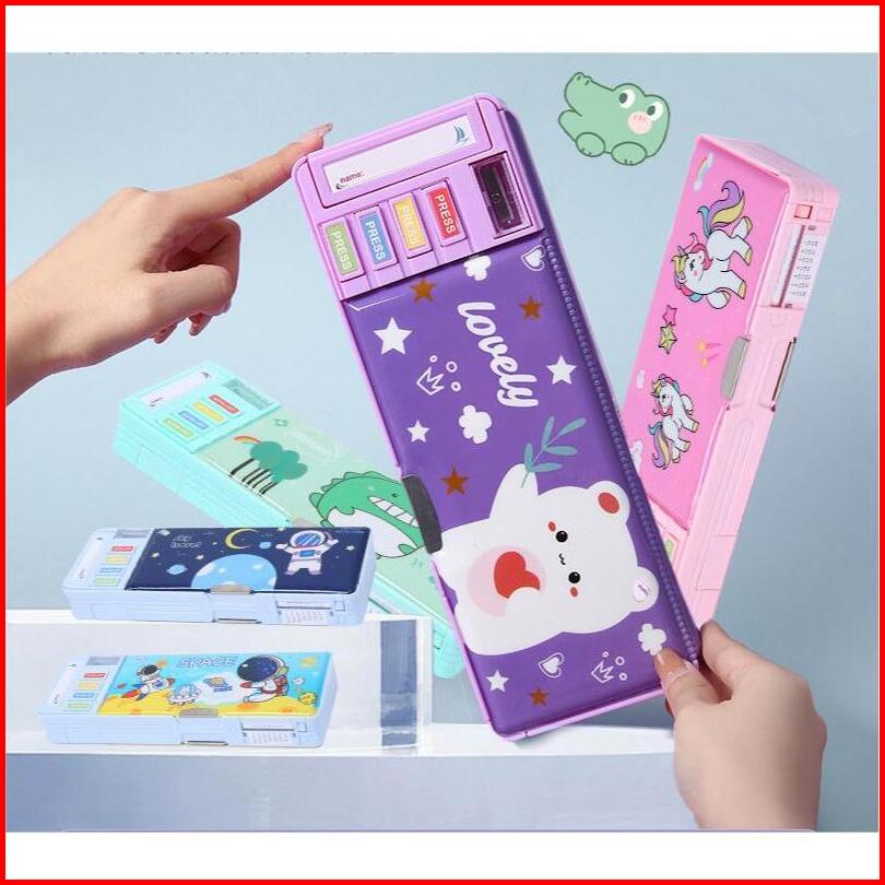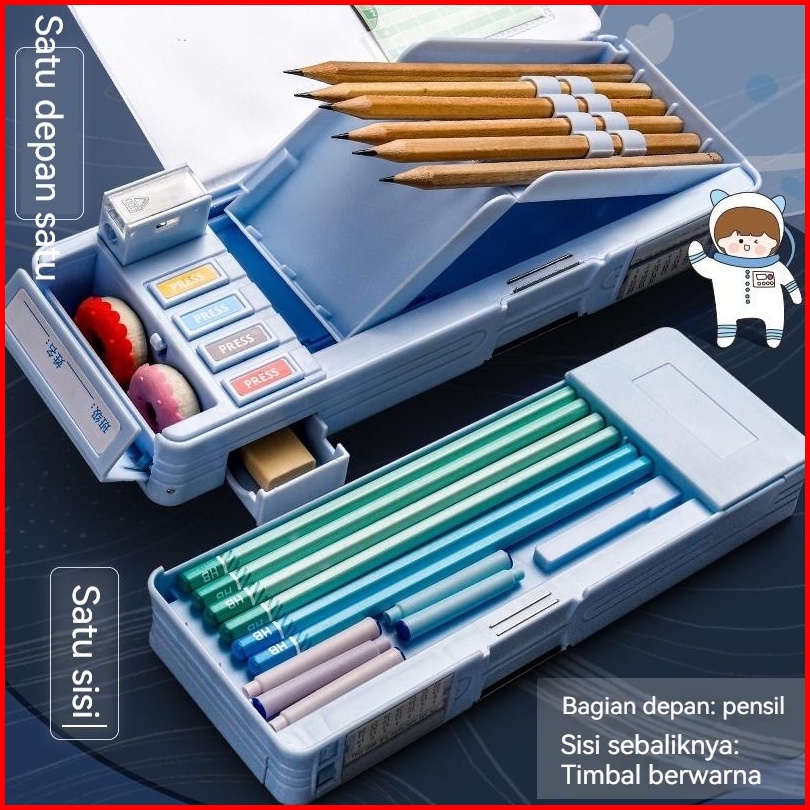 Tempat Pensil Multifungsi Kapasitas Besar Pensil Case Kanak-kanak Motif Unicorn Dinosaurus Astronot Untuk Anak