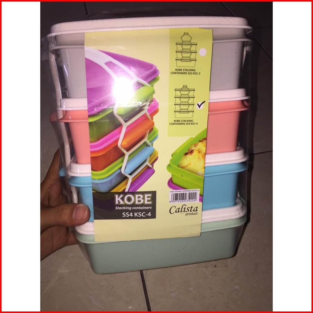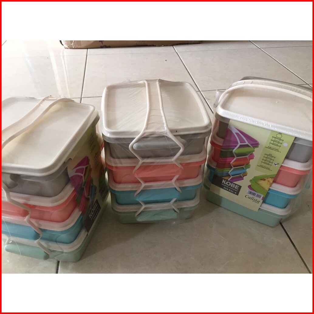 Segi Empat Calista Kobe Rantang 4 Susun Rainbow Tempat Makanan Premium Lunch Box Tempat Makan Rantang Piknik