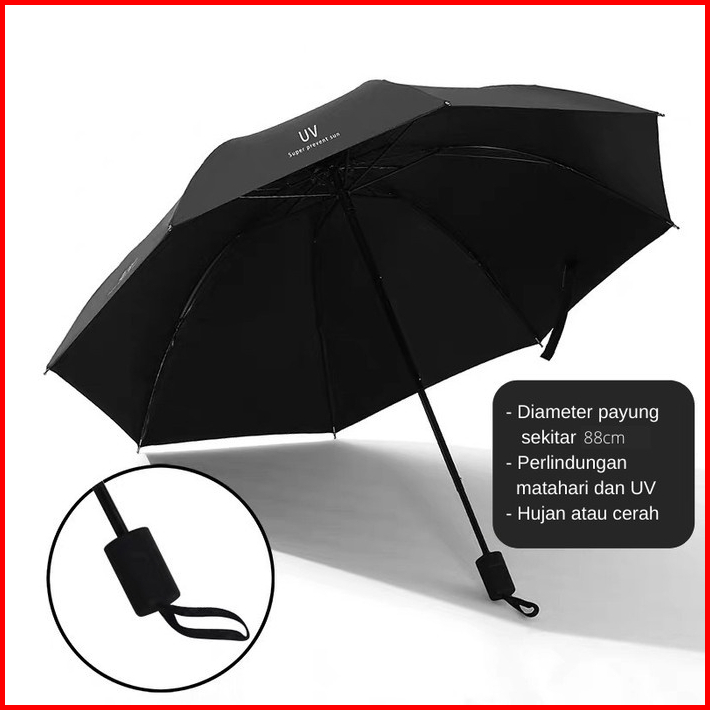 Garansi Termurah Payung Lipat Otomatis Anti Sinar Uv Matahari Panas Hujan Bahan Kuat Kokoh Otomatis Buka Tutup