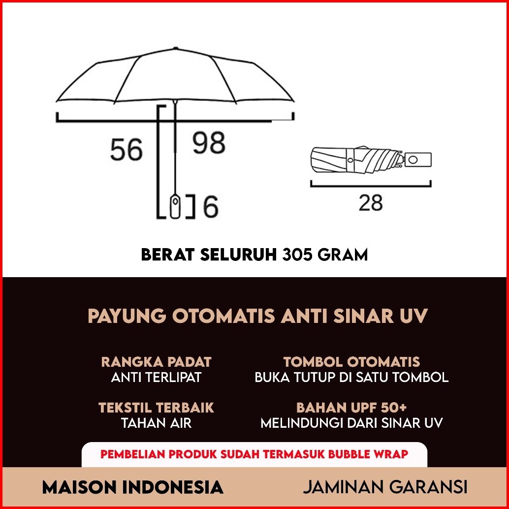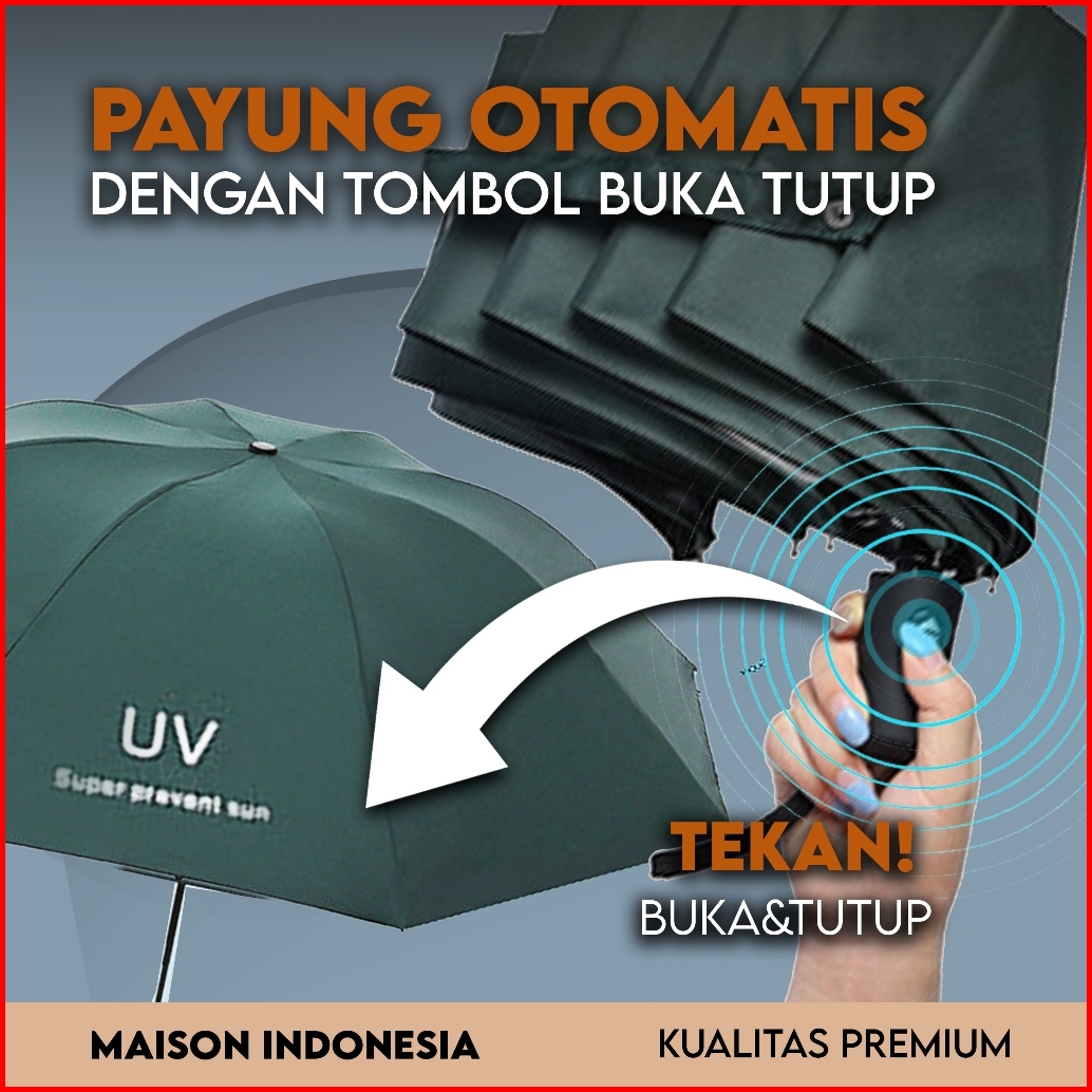 Payung Otomatis Buka Tutup Lipat Tombol Anti Panas Uv Ultra Violet Automatic Elegan Korea Anti Hujan Manual Umbrella