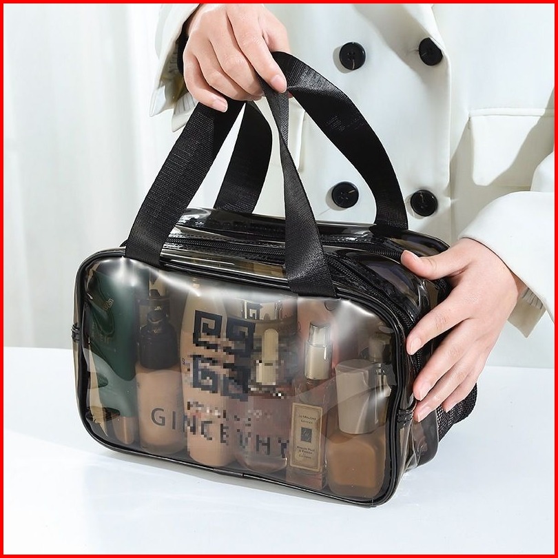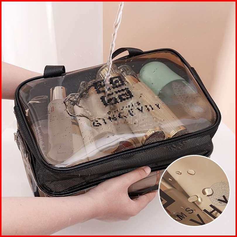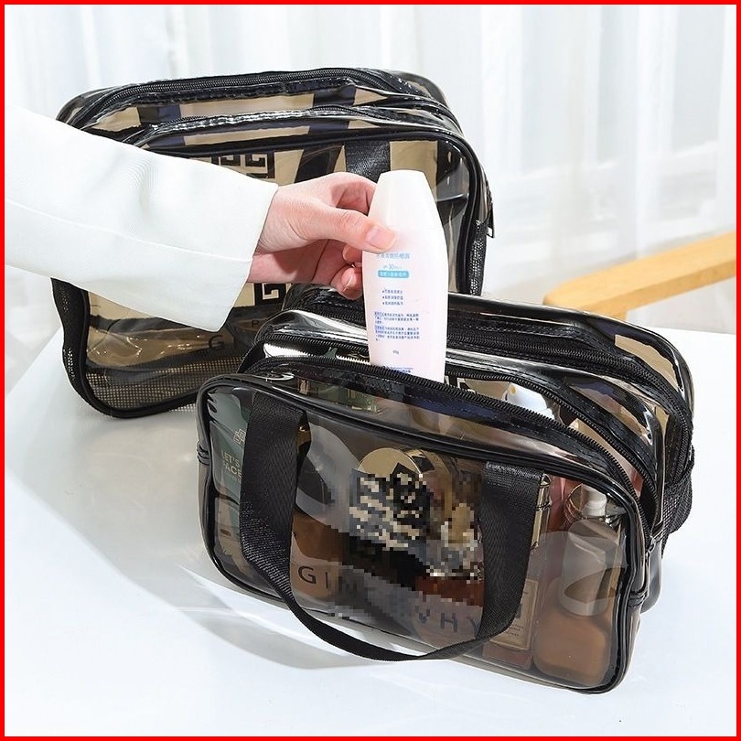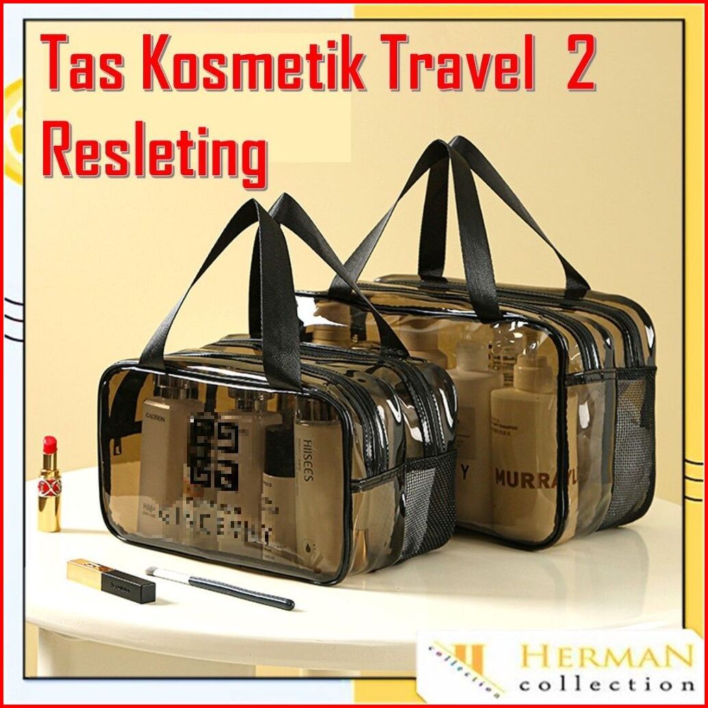 Hc Tas Kosmetik Transparant 2resleting Besar Pouch Travel Make Up Bag Organizer Dompet Kosmetik Toiletry Waterproof Pouc
