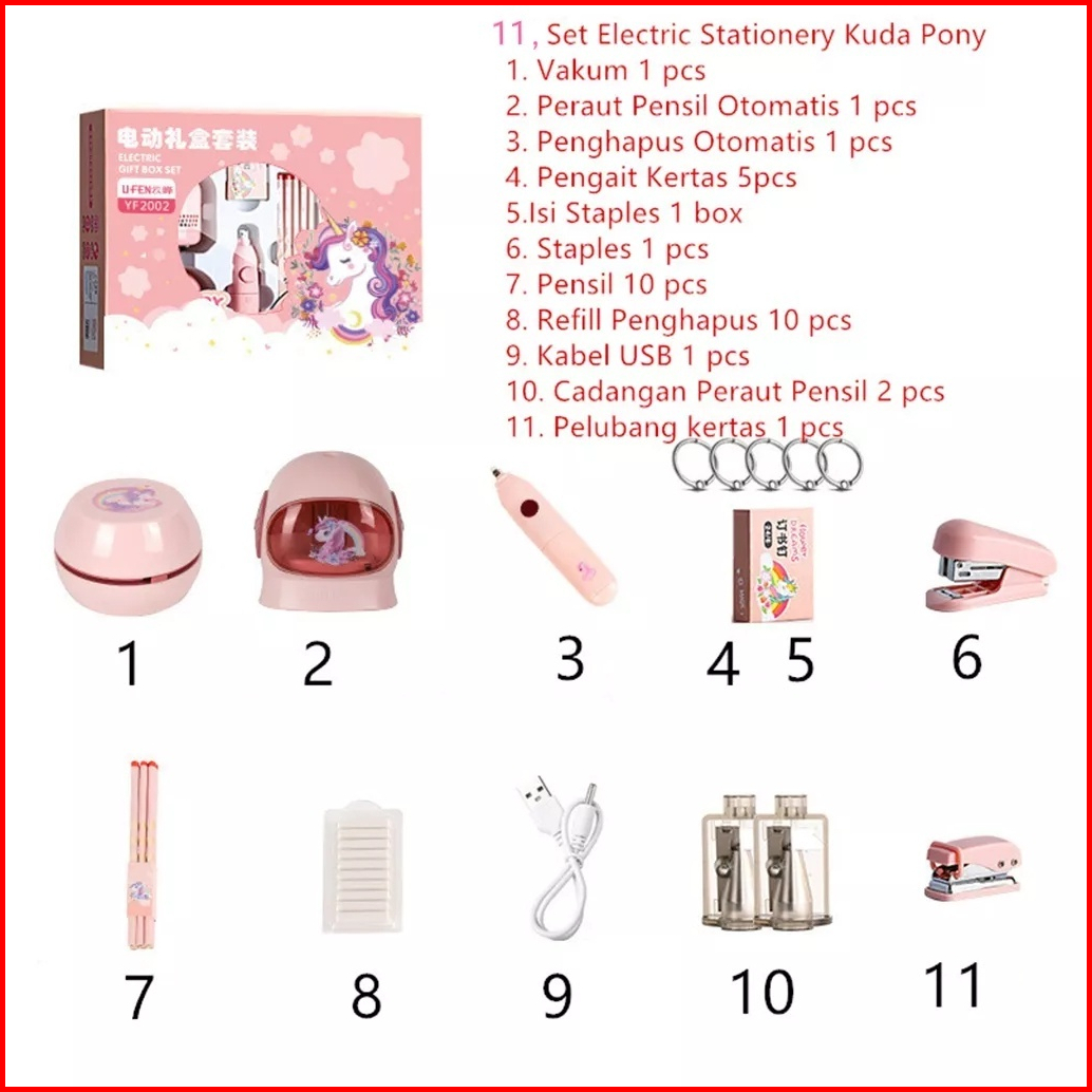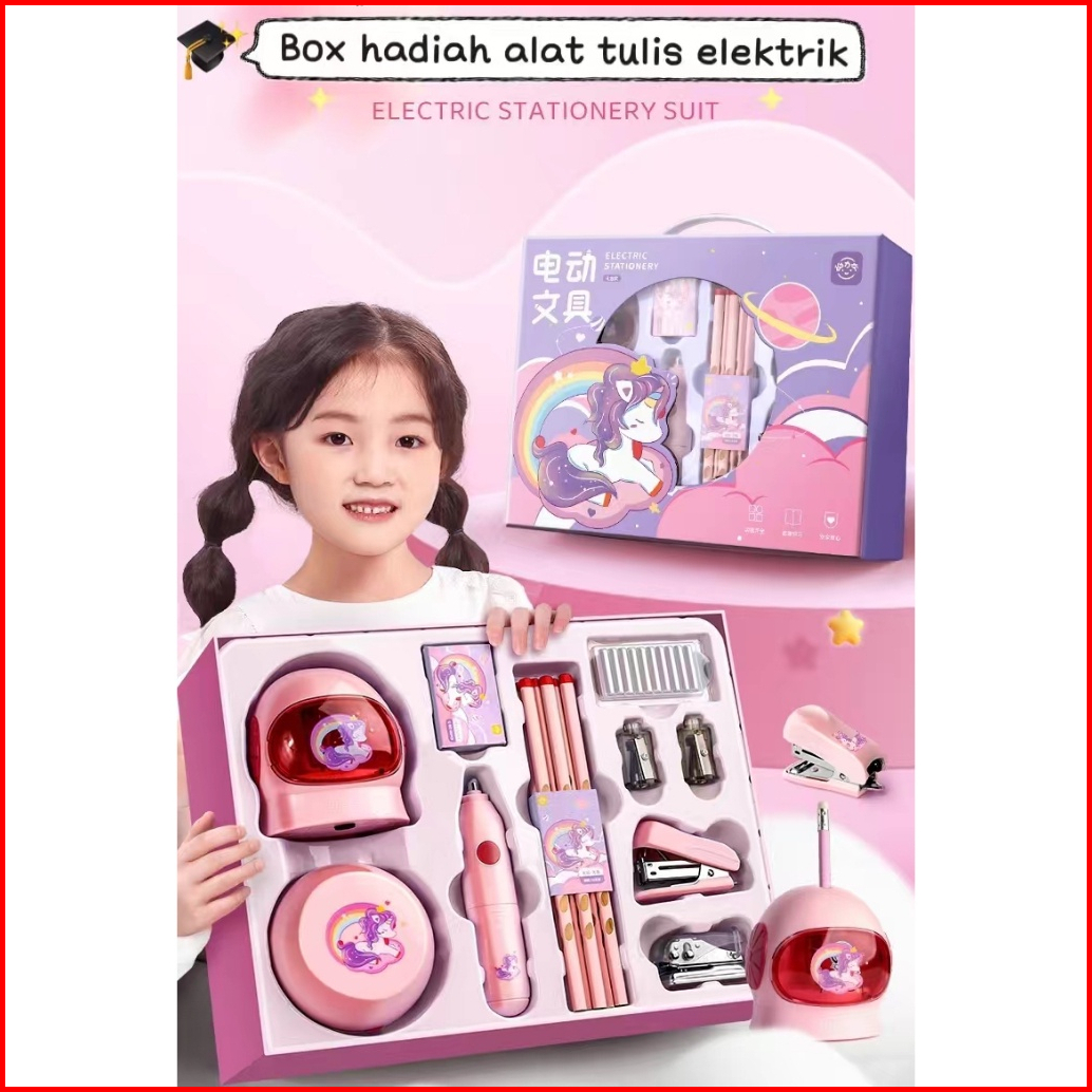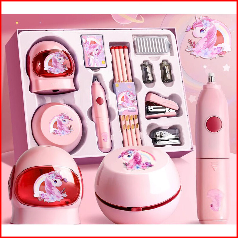 Loooopy Electric Stationery Set Set Alat Tulis Elektronik Rautan Penghapus Vacuum Pencil 11 In 1 Set Alat Tulis Elektron