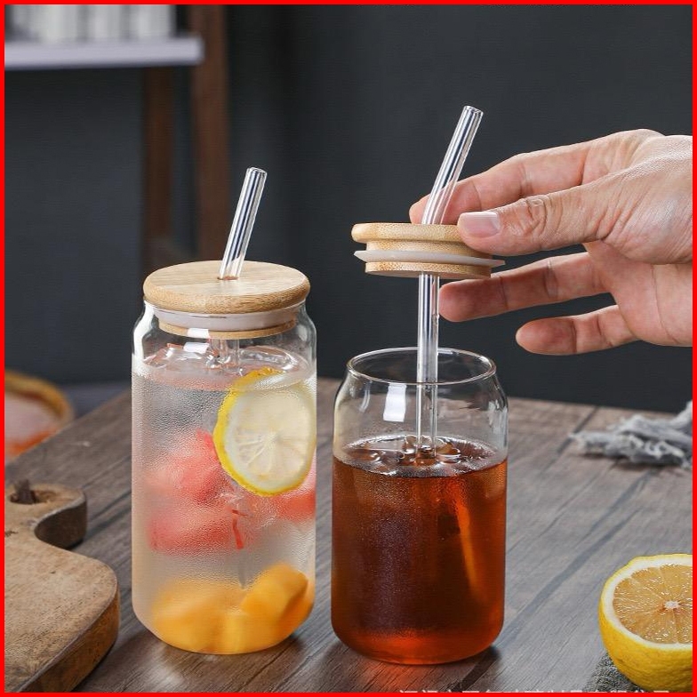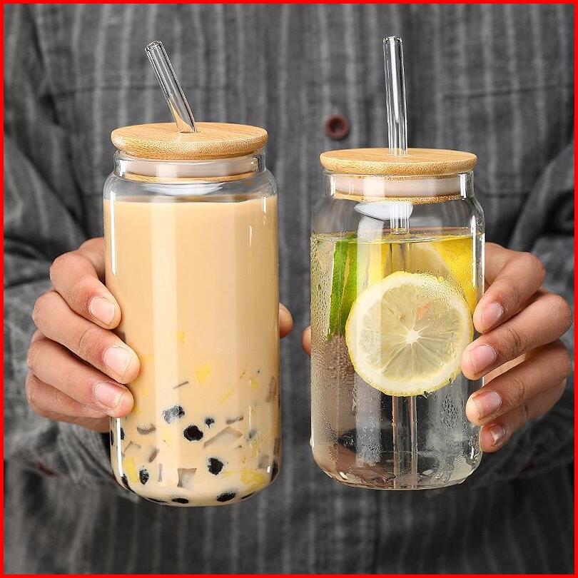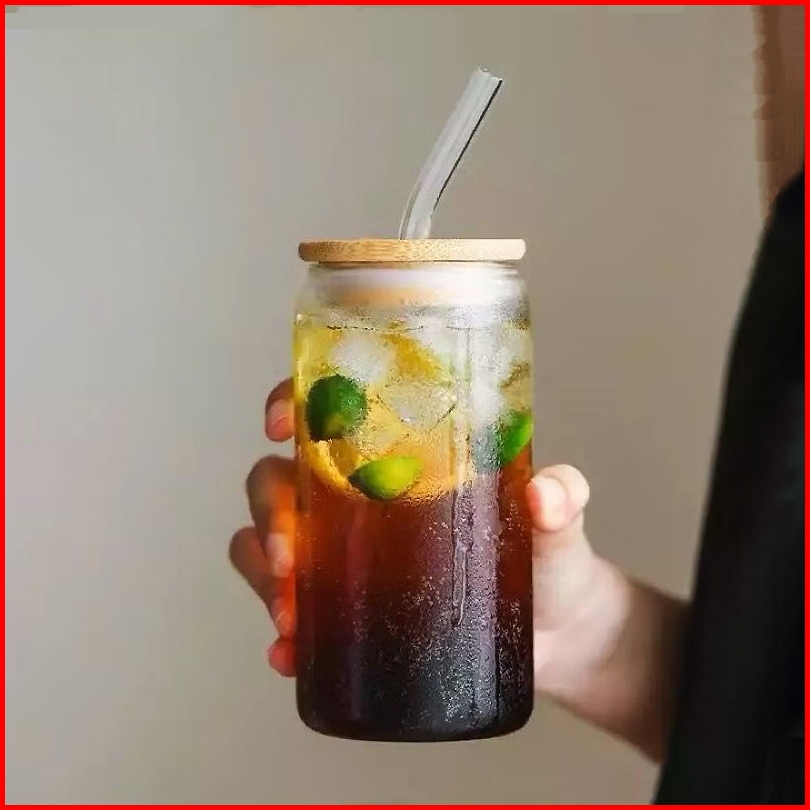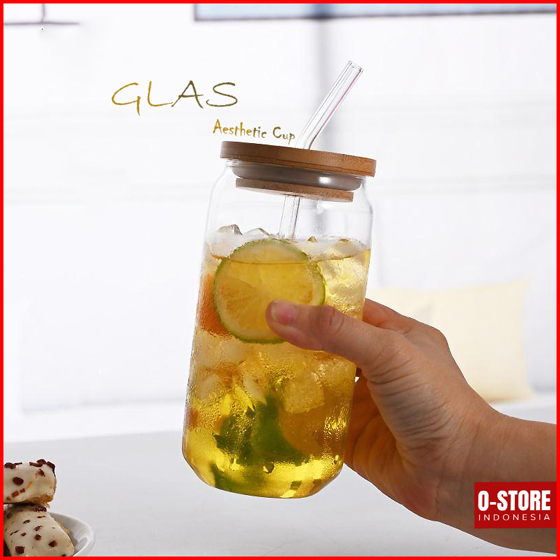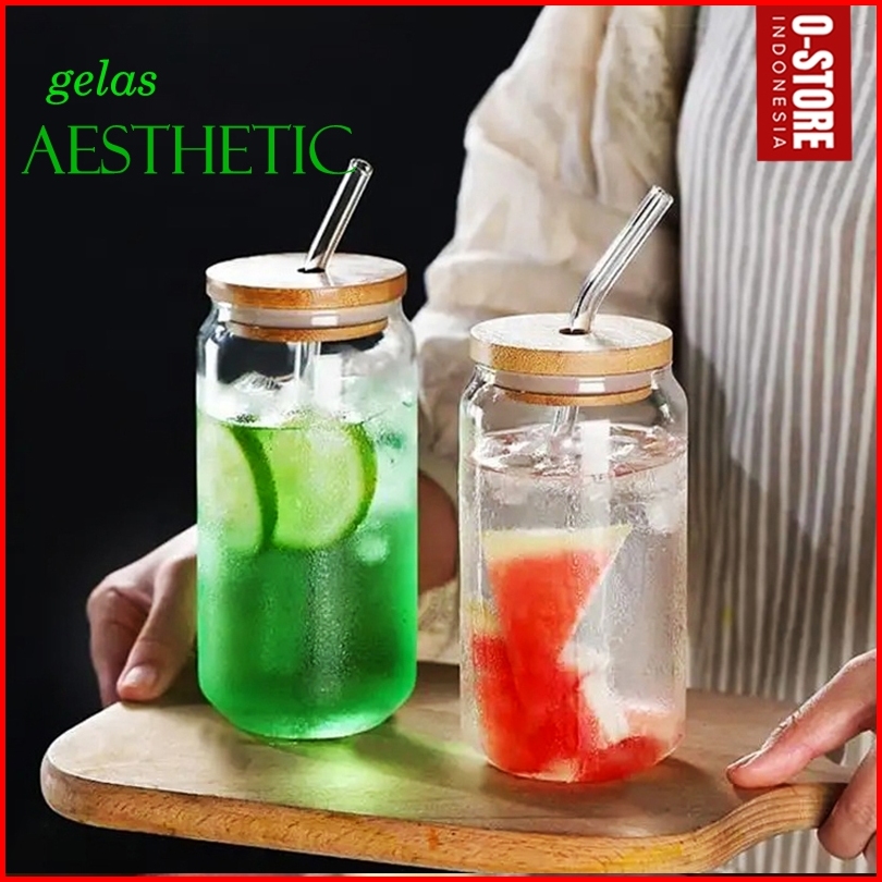 Gelas Aesthetic Tutup Kayu Mug Botol Minum Cangkir Gelas Kaca Souvenir Tumbler Kaca Glas