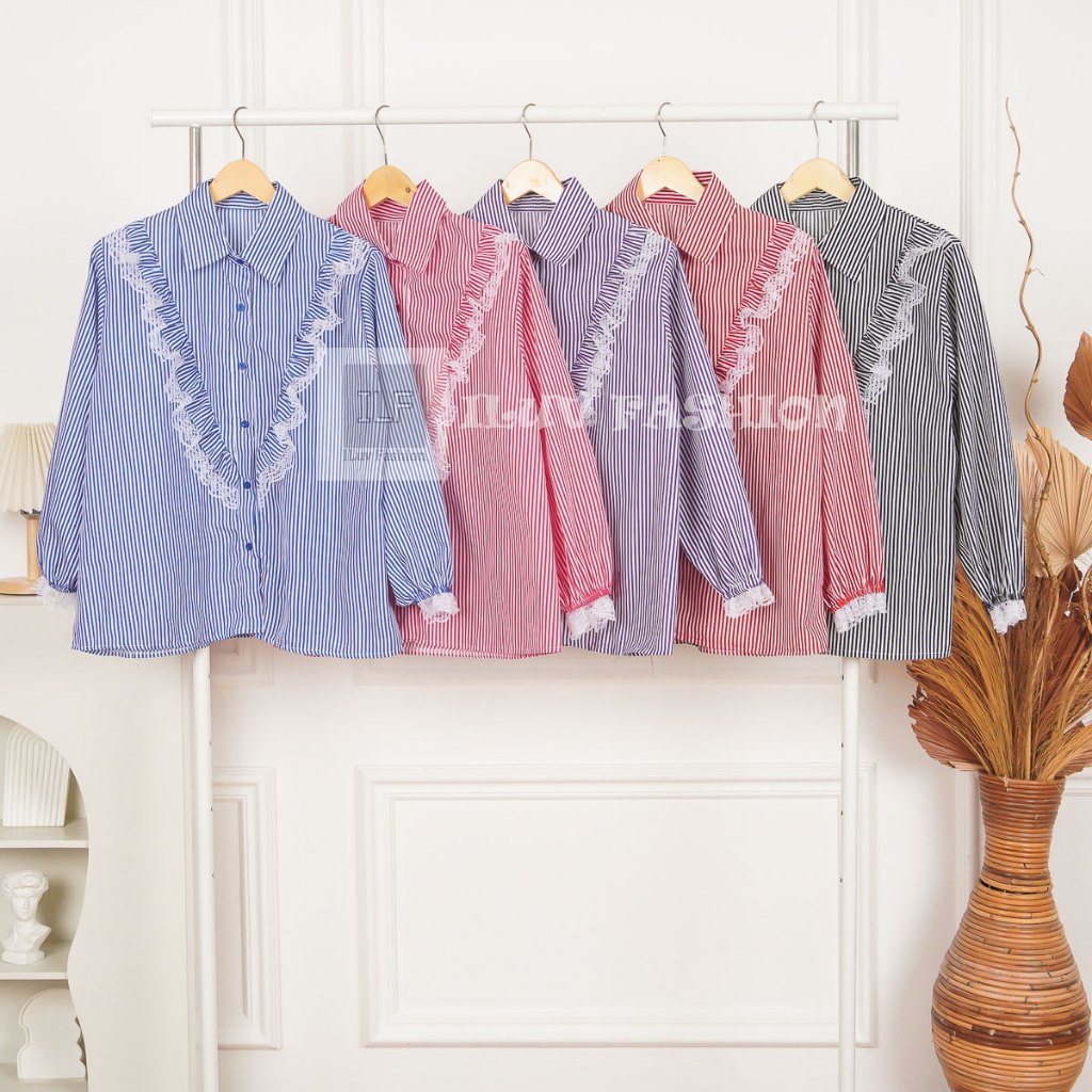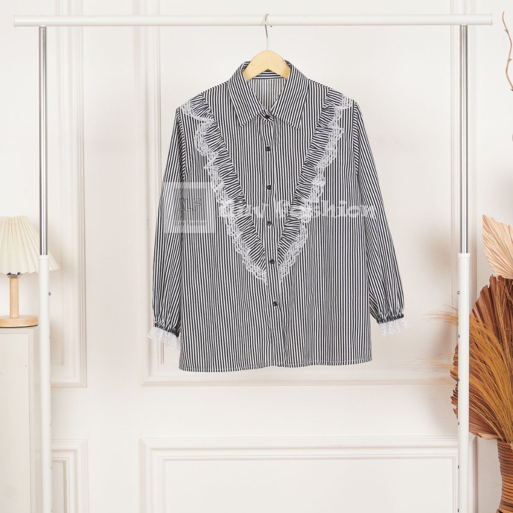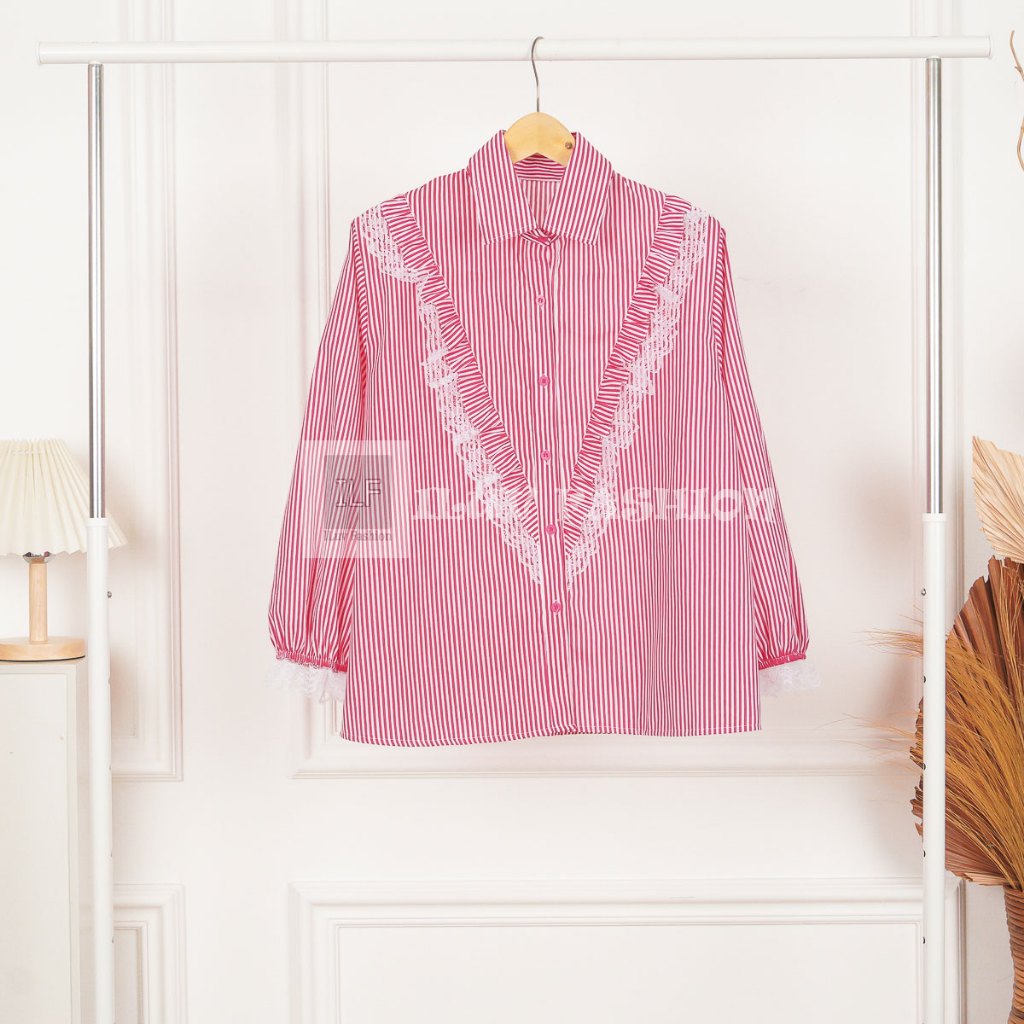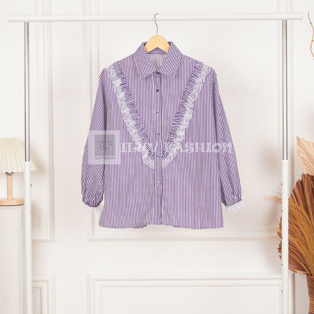 RIANA LACE BLOUSE KEMEJA SALUR KOMBINASI BRUKAT / ATASAN SALUR STRIPE KEKINIAN