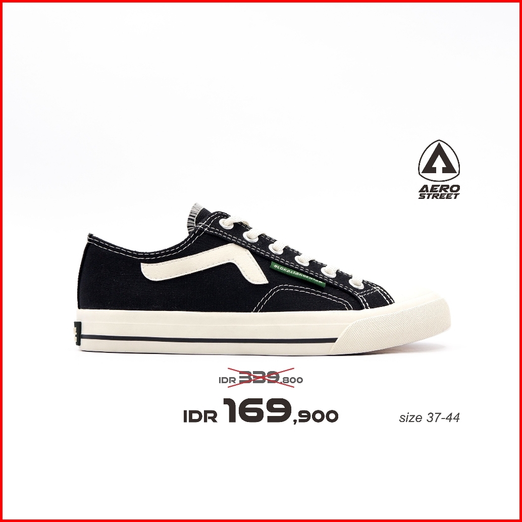 Aerostreet 37-44 Jhosse Low Hitam Natural - Sepatu Sneakers Casual Sekolah Pria Wanita Aero Street
