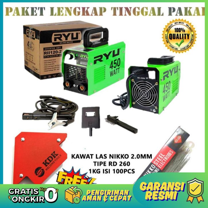 (GRATIS ONGKIR) MESIN LAS LISTRIK RYU 450 W TRAVO INVERTER 120 MMA IGBT LAS RYU 450WAT