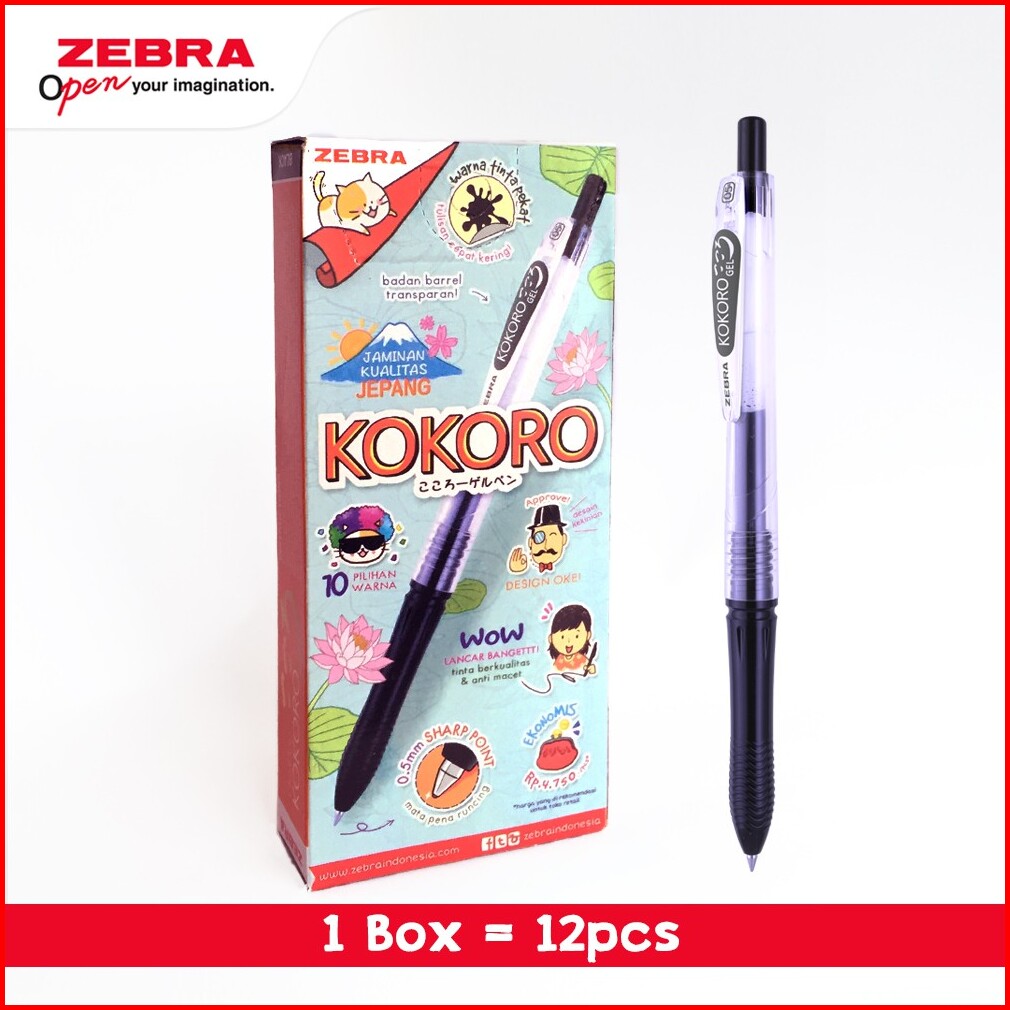 Zebra Kokoro Pulpen Gel 12 Pcs 0.5mm Retractable Gel Pen Tinta Warna Hitam Alat Tulis