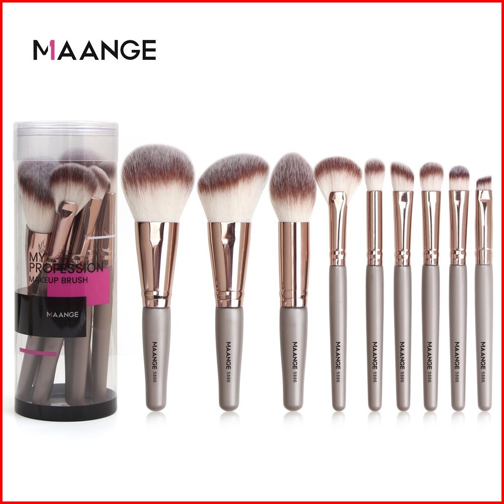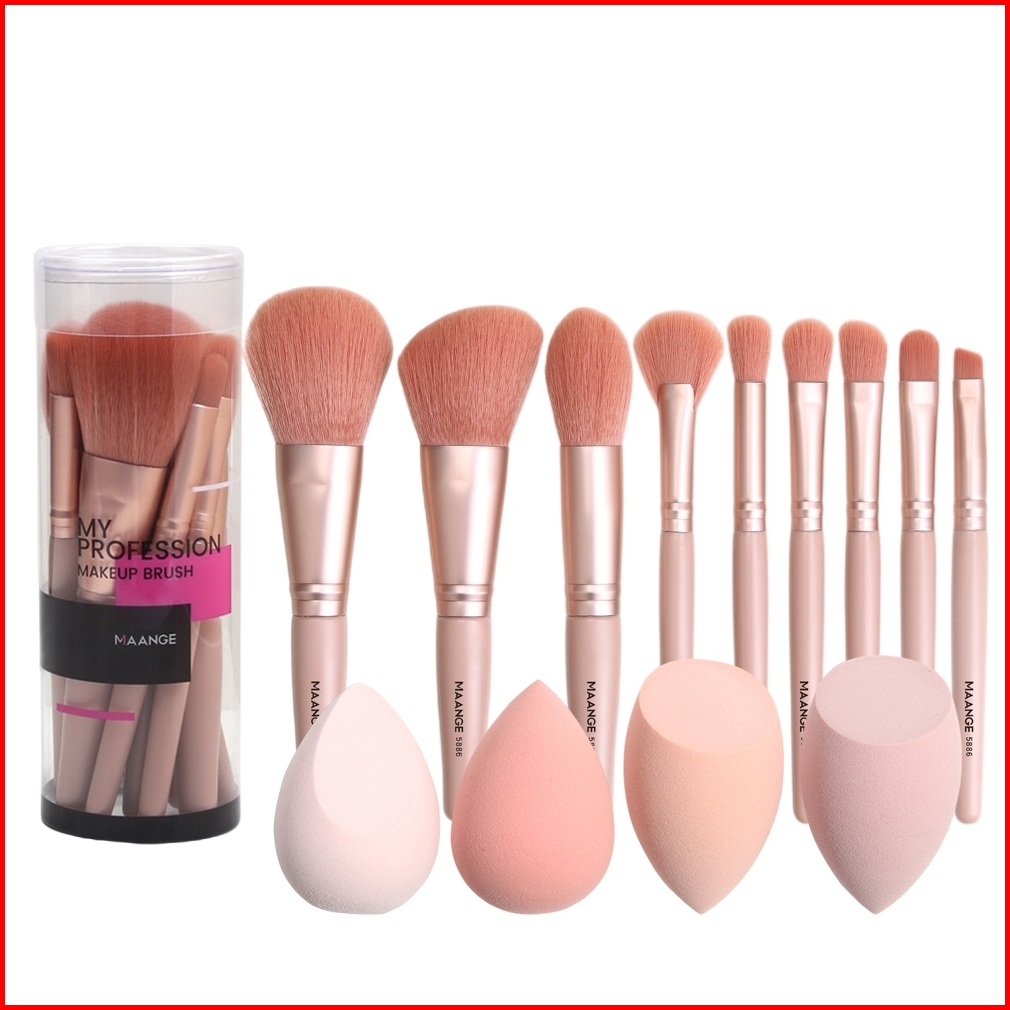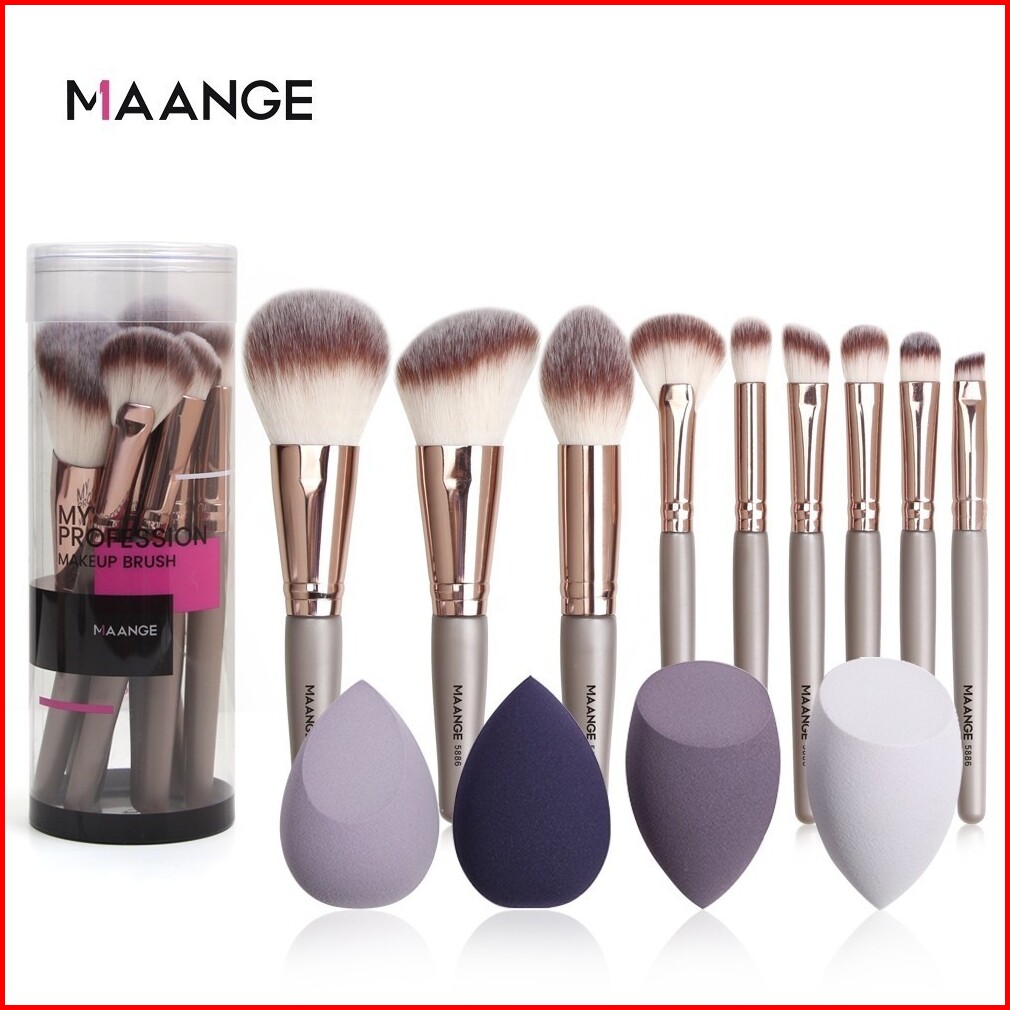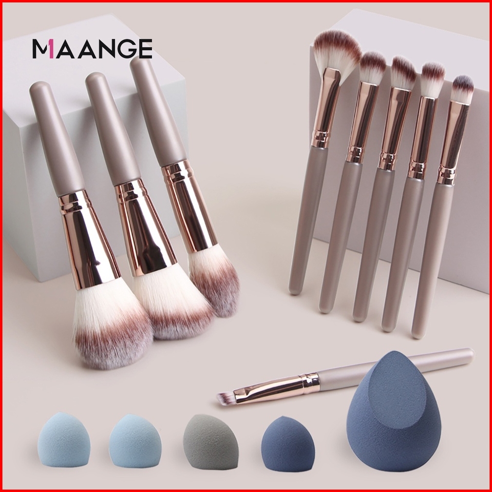 Maange 9 Pcs Set Brush Makeup Dengan 4 Pcs Beauty Spons Lembut Super Multifungsi Alat Kecantikan Untuk Mata Hidung Blush