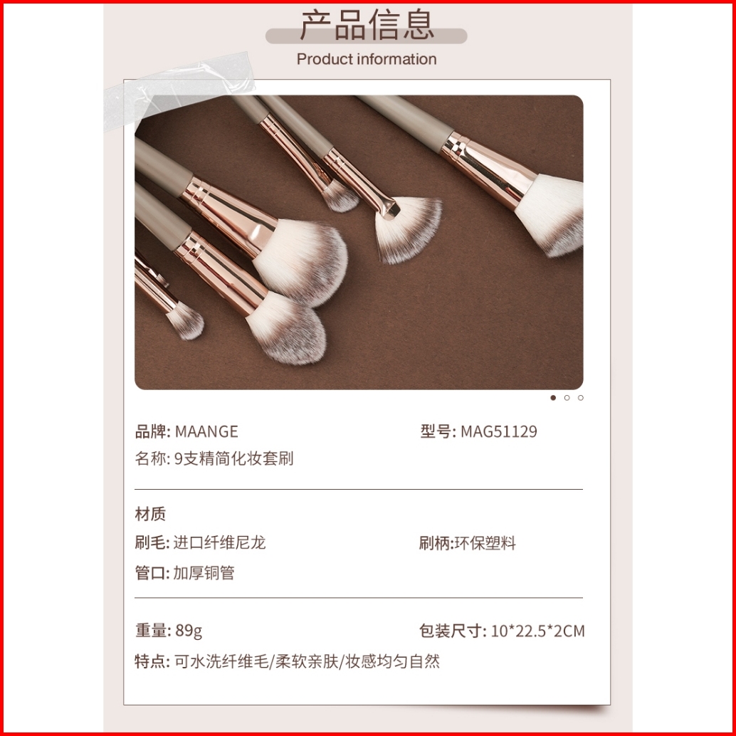 Maange 9 Pcs Set Kuas Rias Brush Kit Makeup Pemula Brush Blush Makeup Kuas Multifungsi Beauty Tools