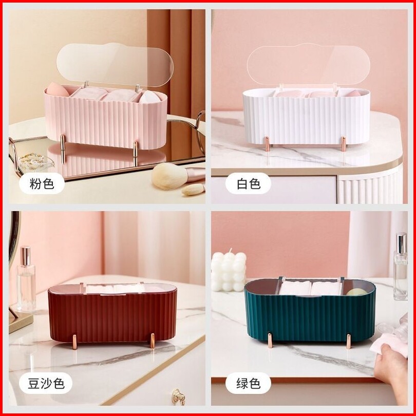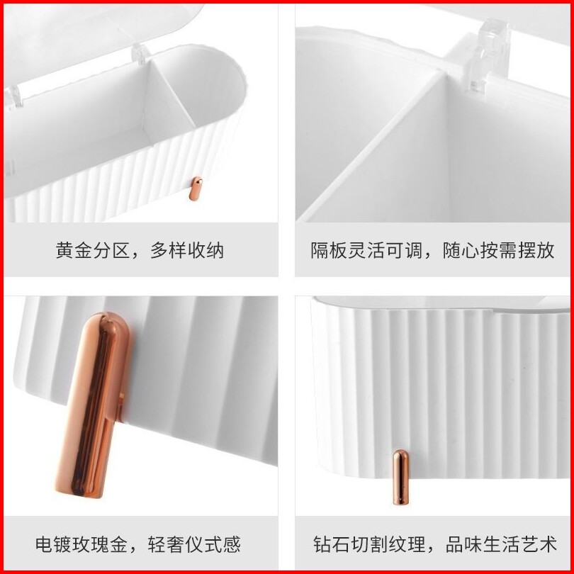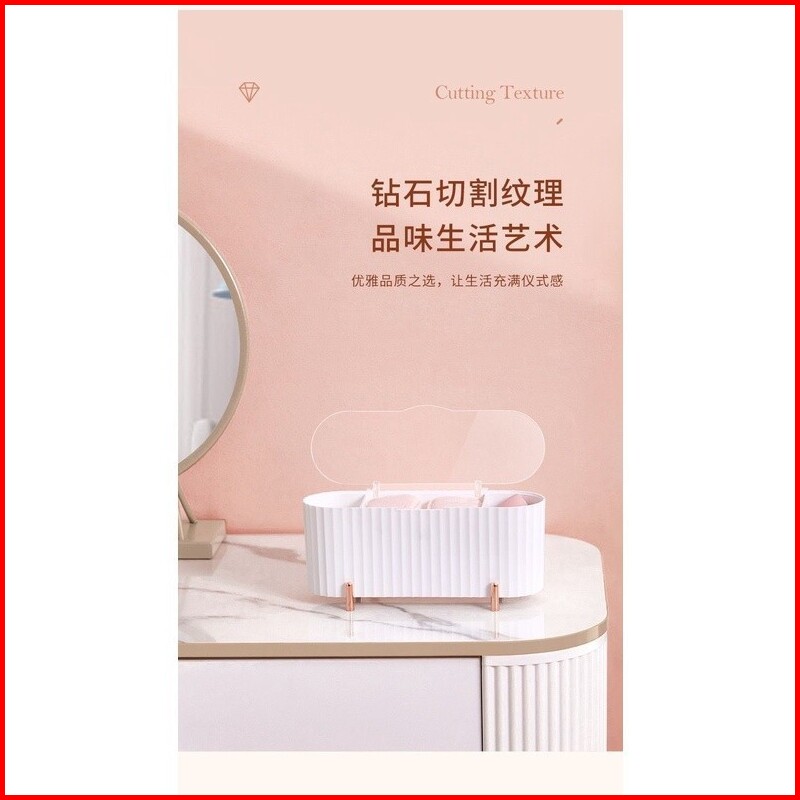 Tempat Penyimpanan Kosmetik 3 Sekat Kotak Organizer Dengan Penutup Transparan