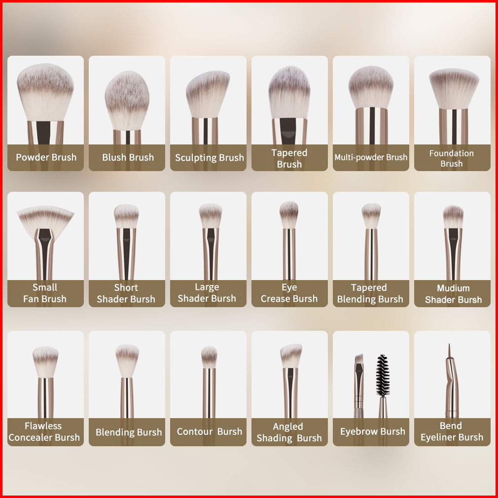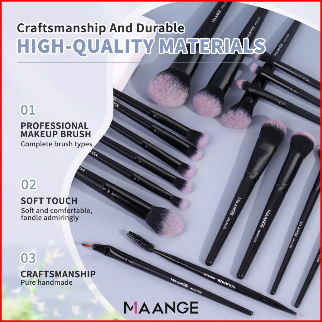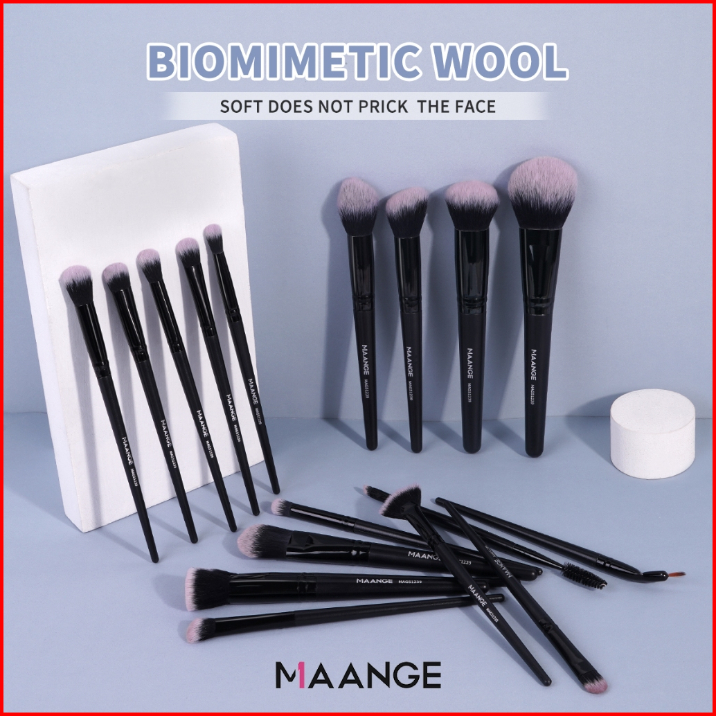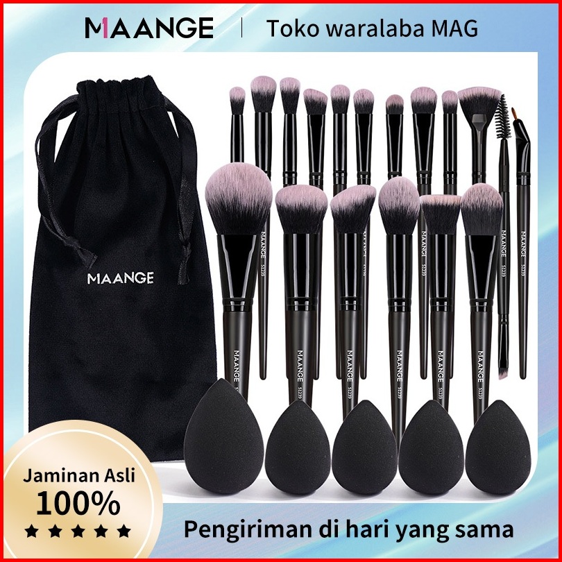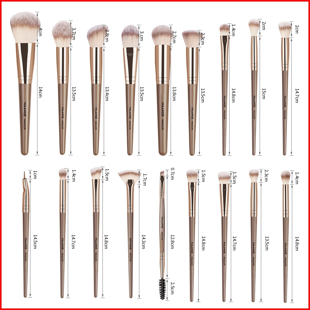 Maange 18 Pcs Makeup Brush Set Dengan Ember Sikat Serat Kuas Makeup Tabung Kuningan Bulu Lembut Fluffy Kuas Powder Kontu