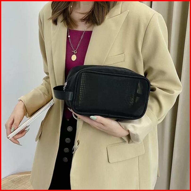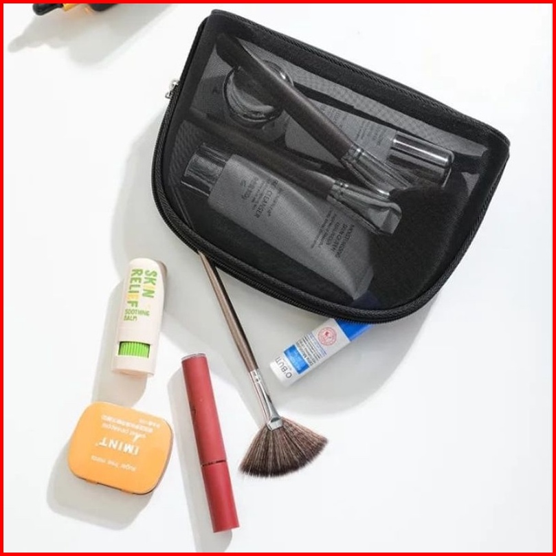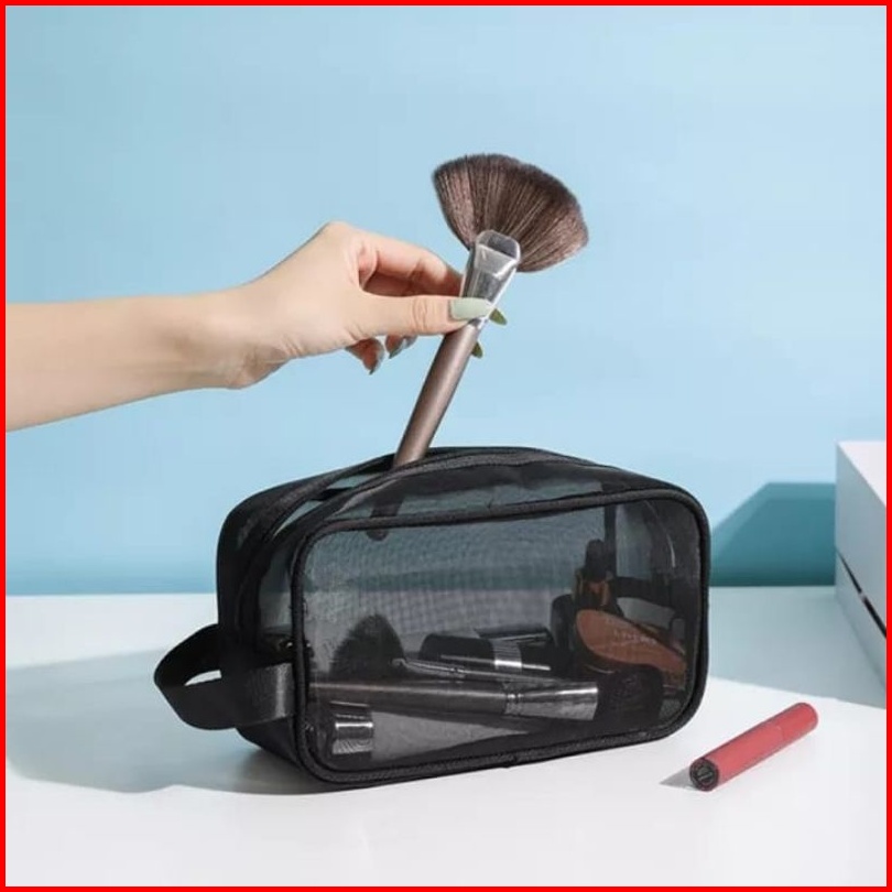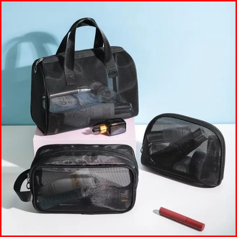Tas Kosmetik Pouch Travel Make Up Bag Nilon Jaring Hitam