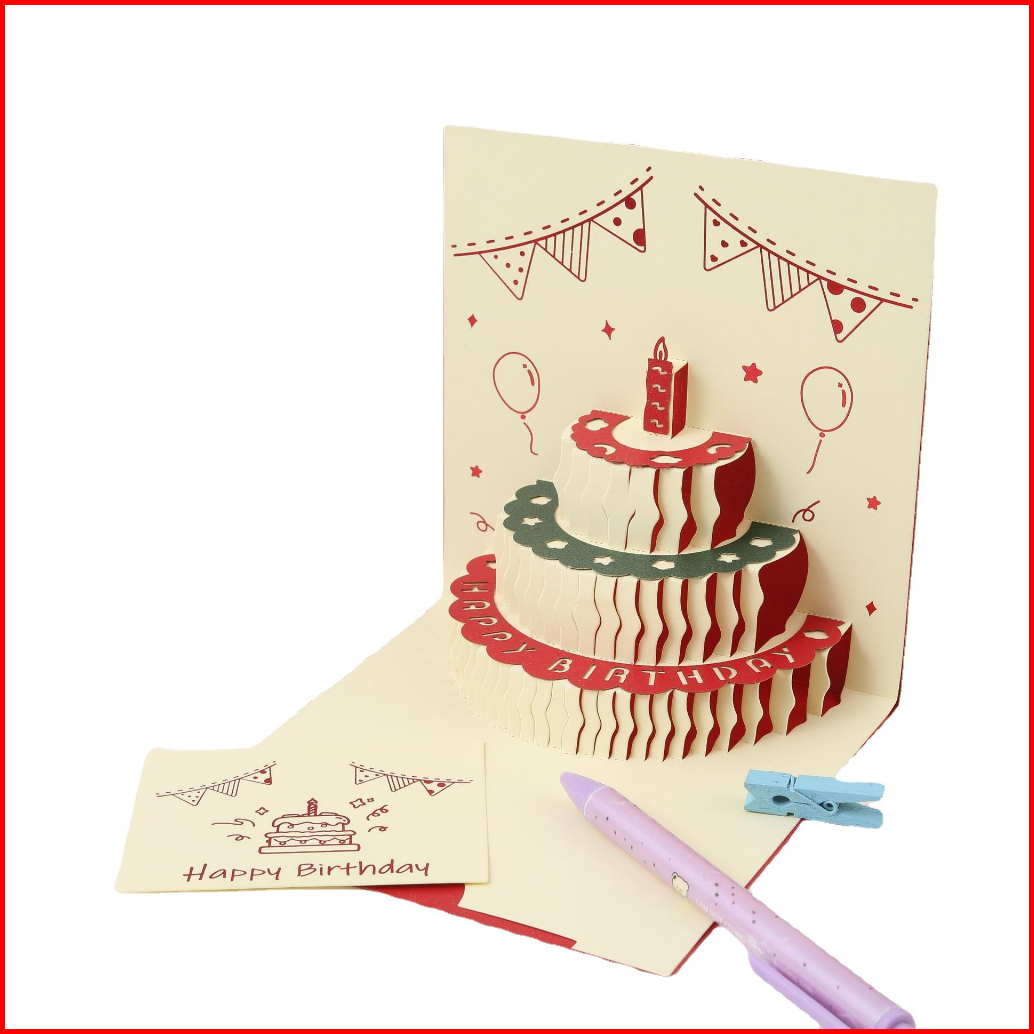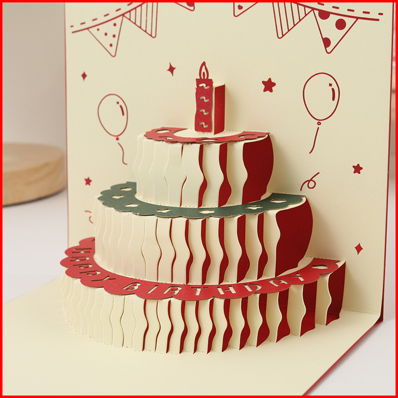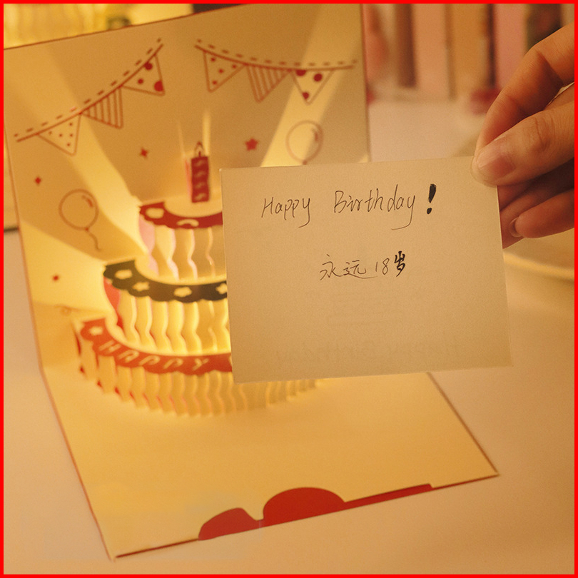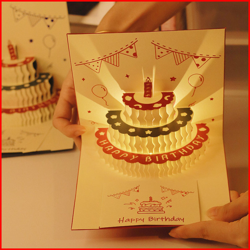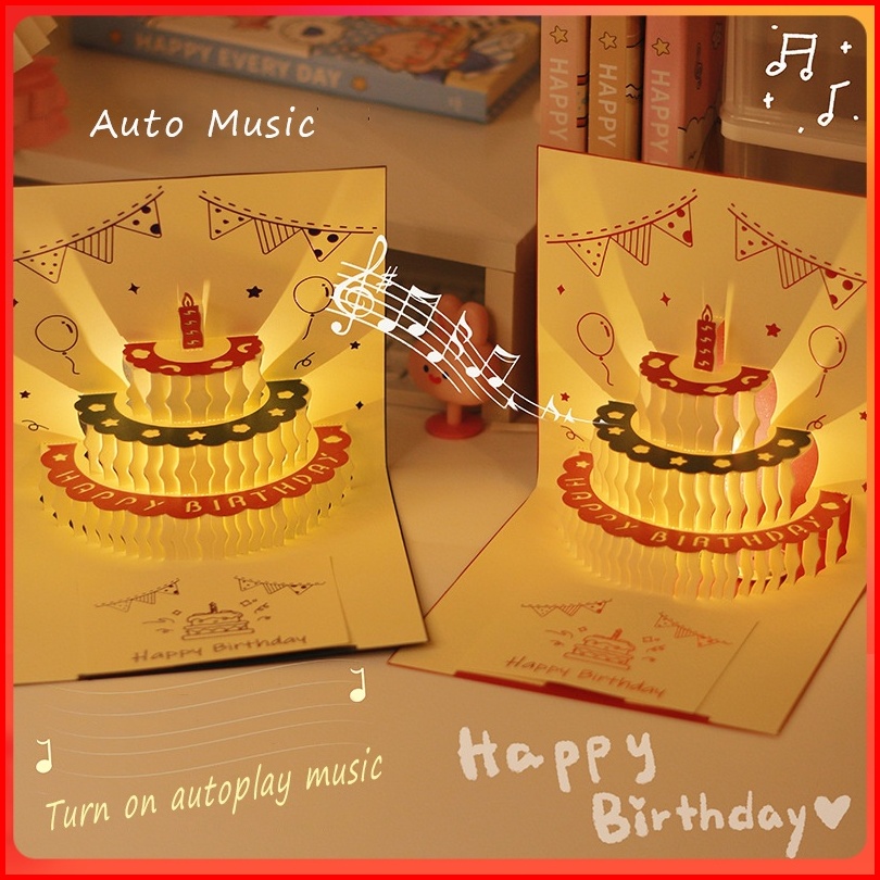 Kartu Ucapan Pop Up 3d Bentuk Kue Ulang Tahun Dengan Lampu Musik
