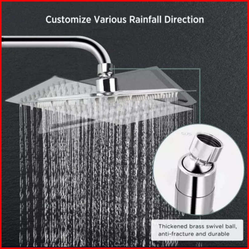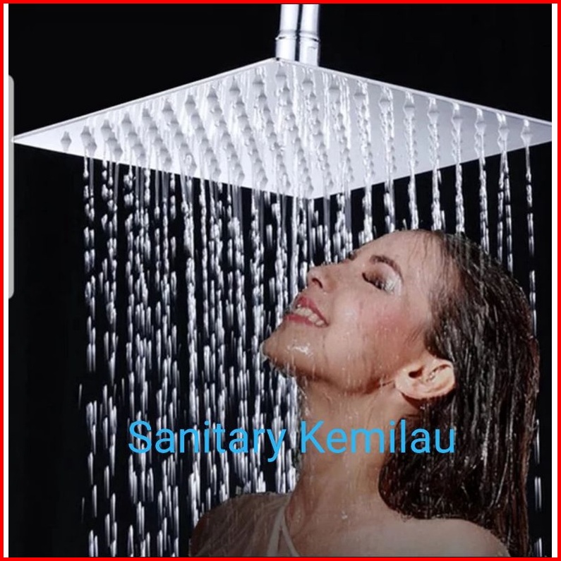 Wall Shower Stainles Ultra Slim 10 Inch 25x25cm Stainless Steel Plus Pipa 30cm - Wall Shower Mandi