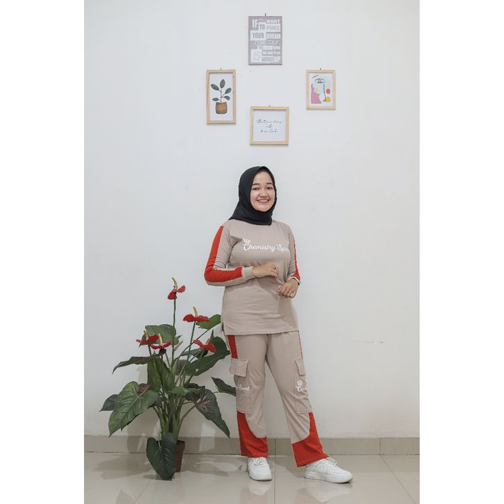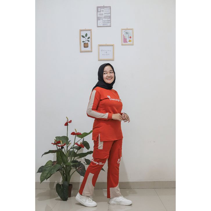 one set baju sports Wanita Muslimah Senam Aerobic Zumba One Set Olahraga Cewek Setelan Pakaian Wanita Katun Adem Nyaman