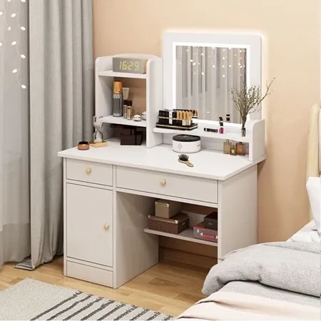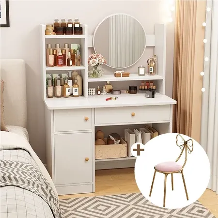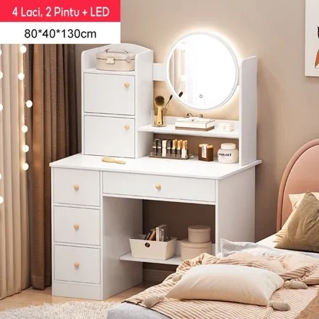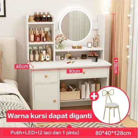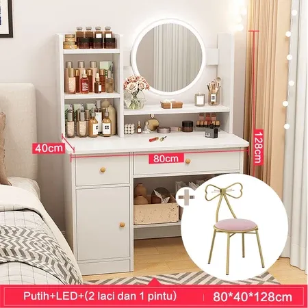 Homsaura Set Meja Rias Kursi Pita/Lampu LED/Minimalis/Murah/Modern/Aesthetic