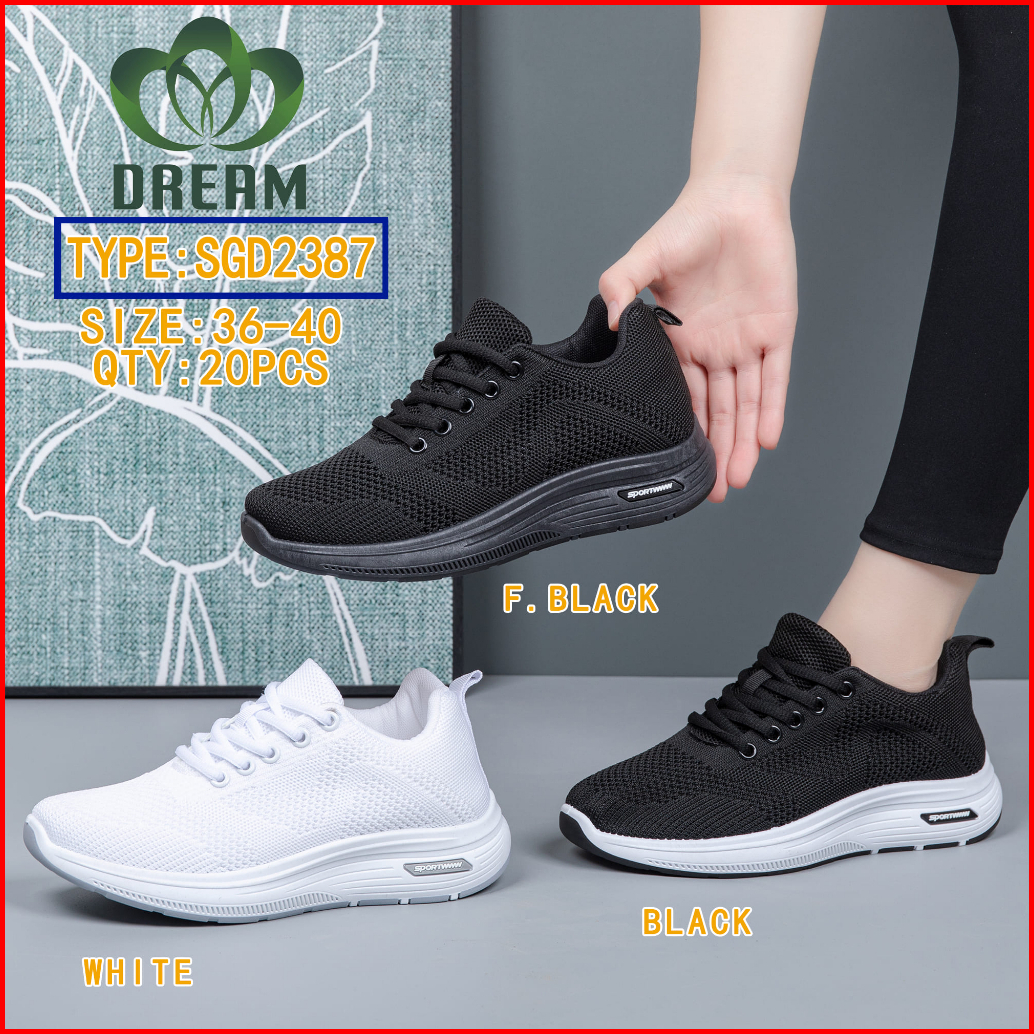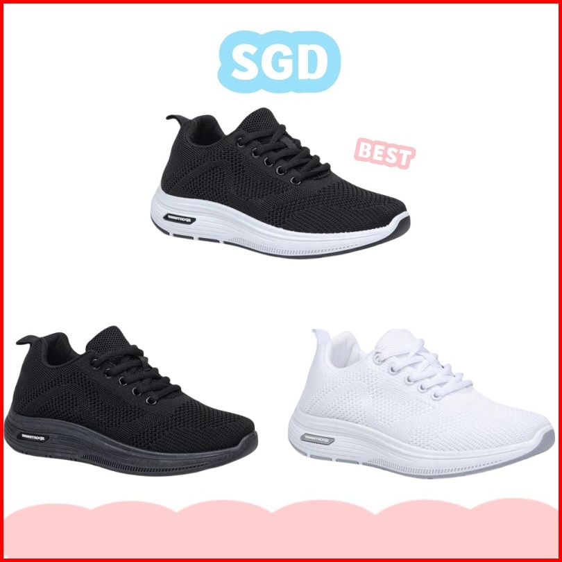 Sepatu Wanita Sneakers Olahraga Dan Outdoor Import Sekolah Full Black Full White Sgd-2387