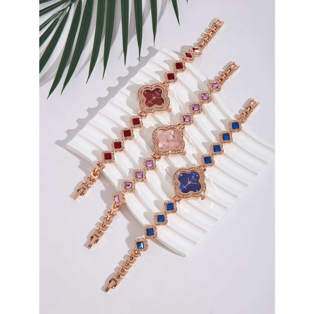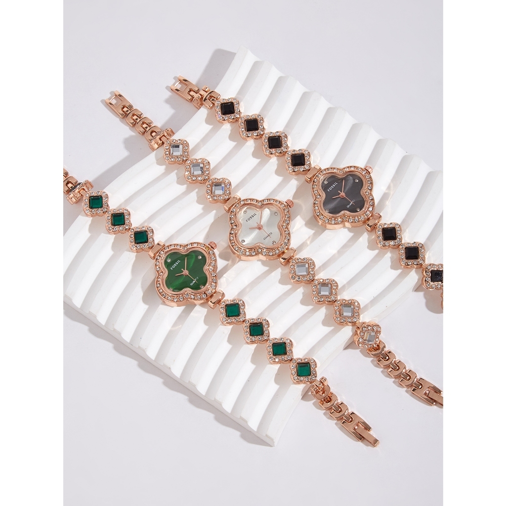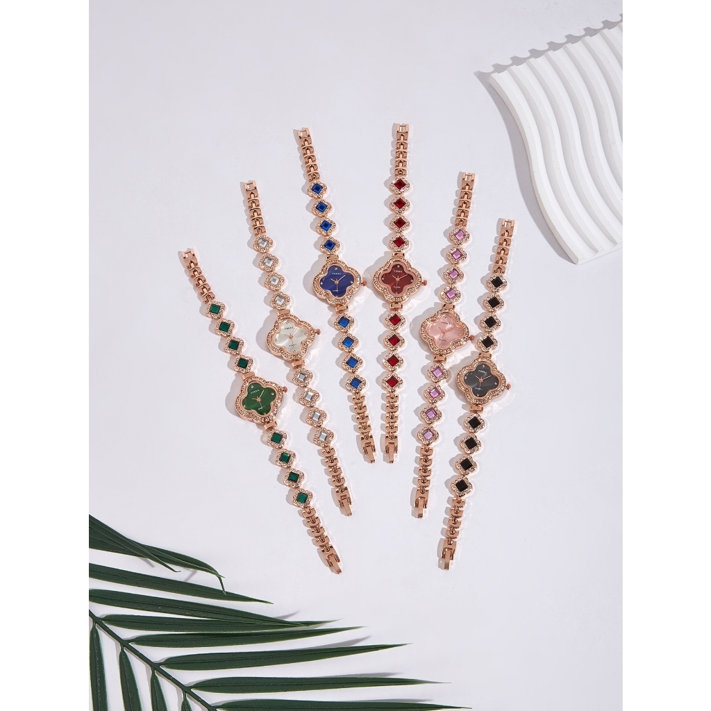 JAM TANGAN WANITA CLOVER HIJAU STAINLESS JAM TANGAN WANITA QUARTZ DENGAN STRAP RANTAI DIAM0ND W300