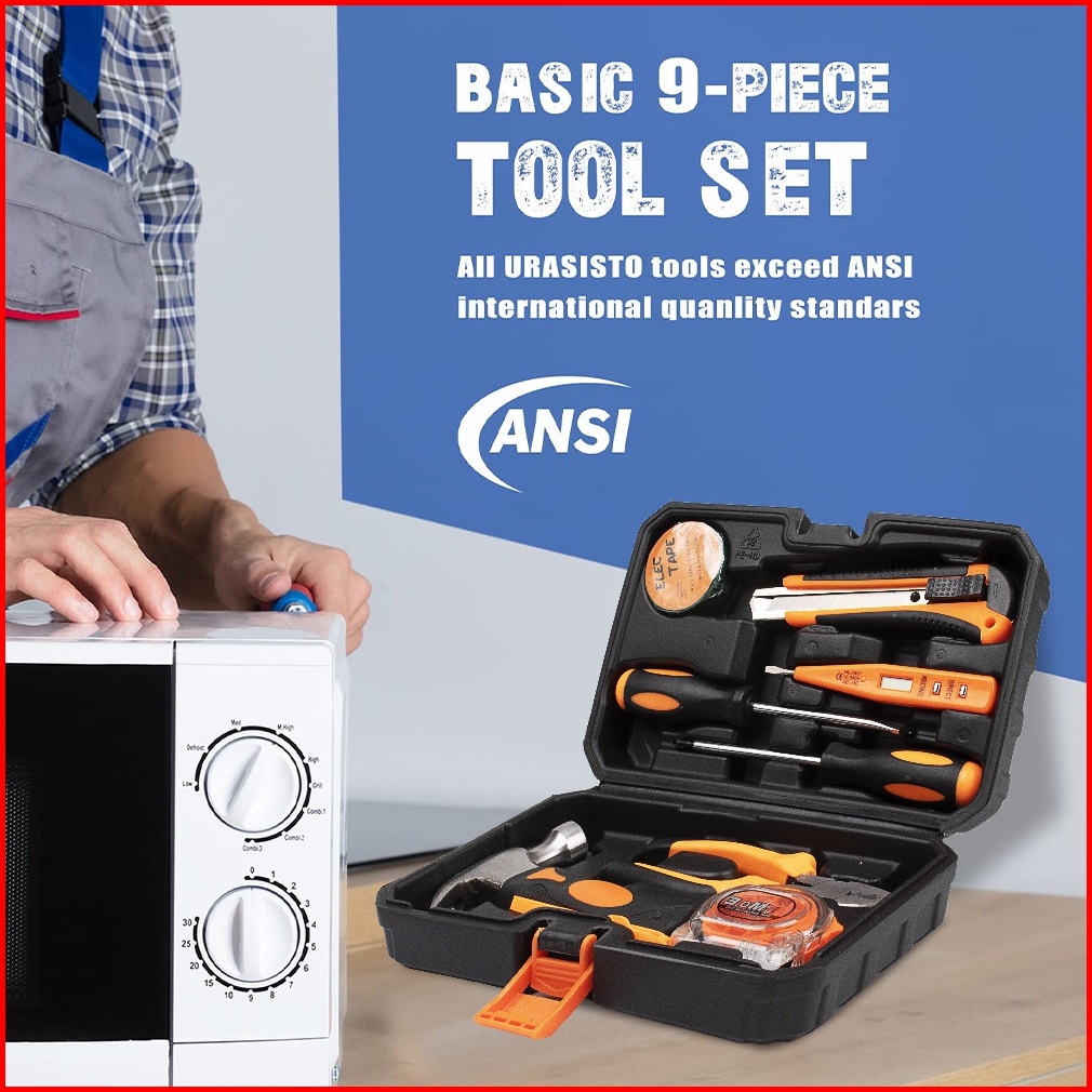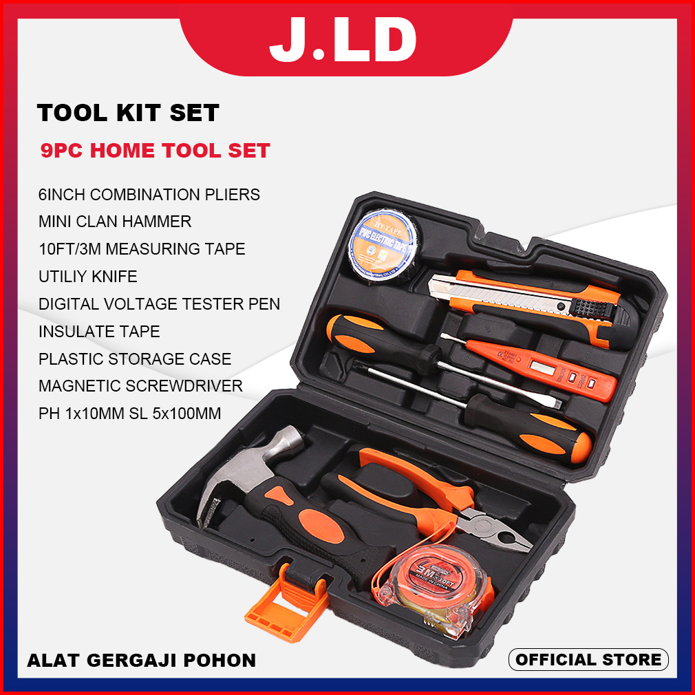 Jld Toolkit Set 9pcs Alat Pertukangan Palu Handtool Box Perkakas Tukang Lengkap Tang Obeng Meteran Cutter Tespen