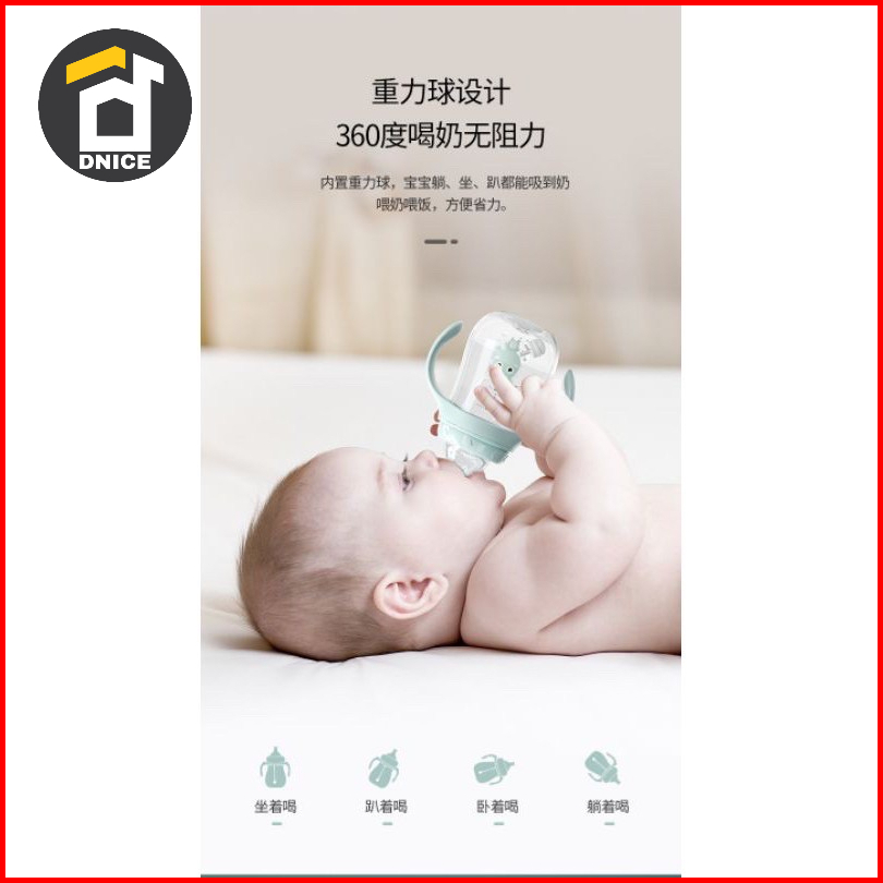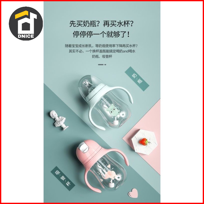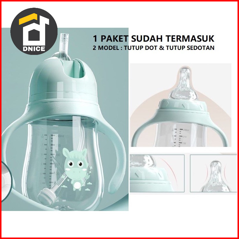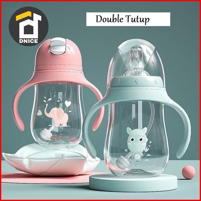 Botol Minum Bayi Wide Cali Jerami Gravitaanti Perut Kembung Anti-jatuh Tutup Ganda 240ml