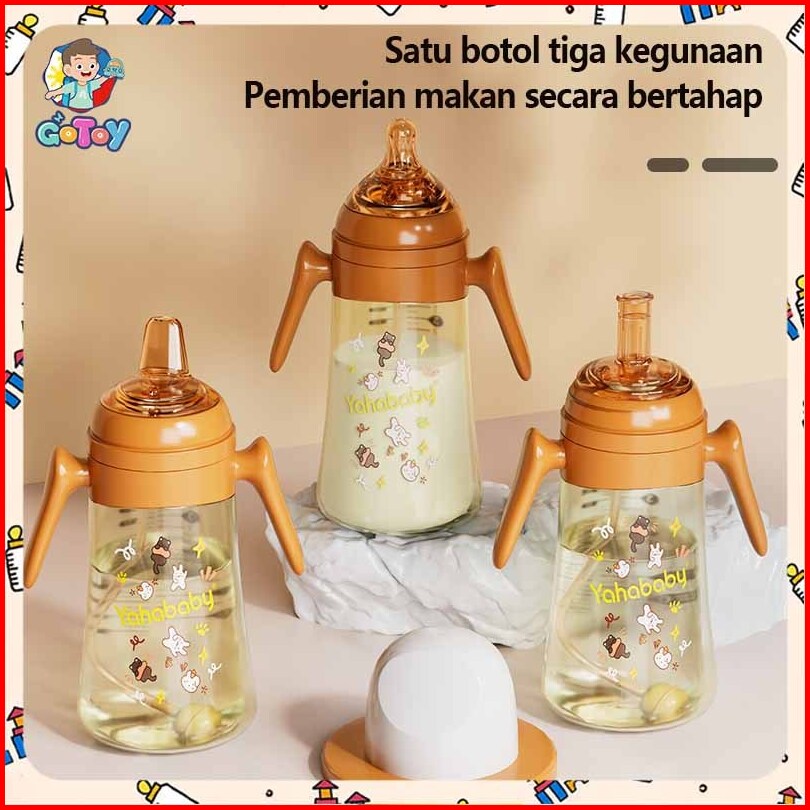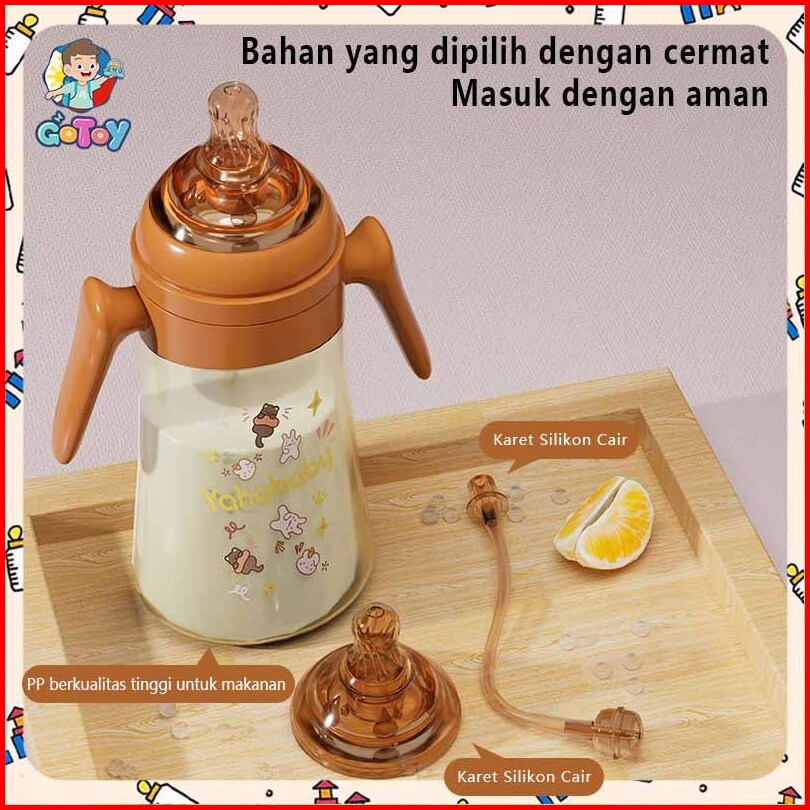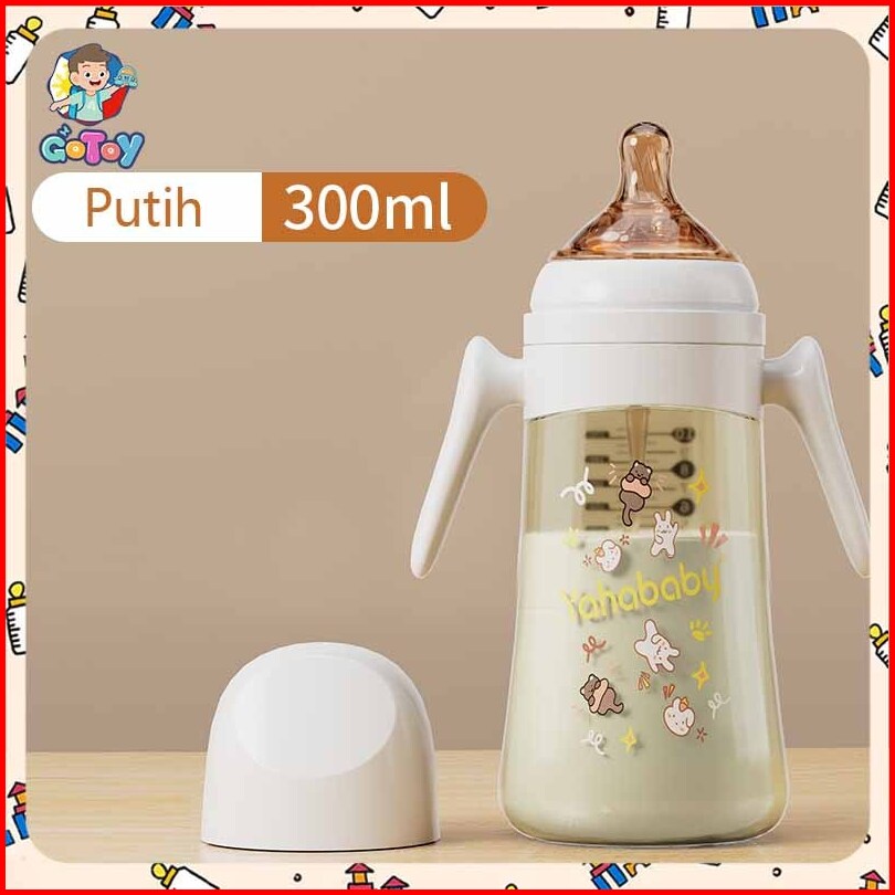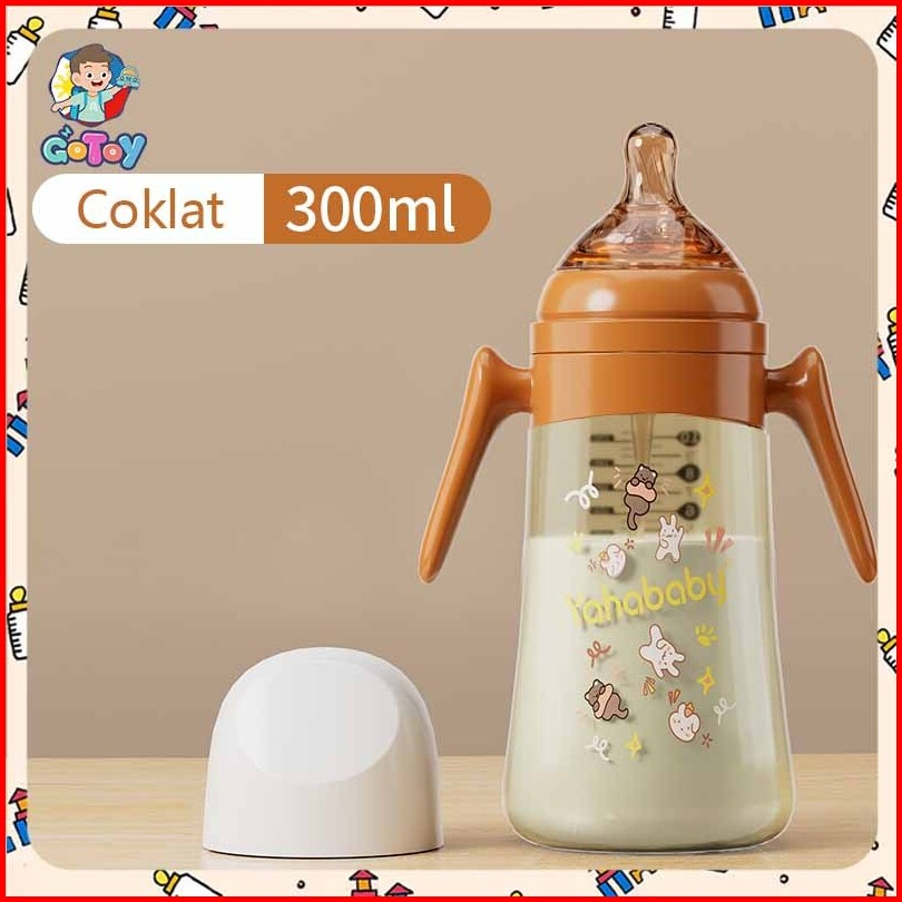 Yahababy Botol Bayi Susu Dengan Antibakteri Silikon Dot Bayi Botol Handle Lucu Motif Botol Feeding Bottle 300ml