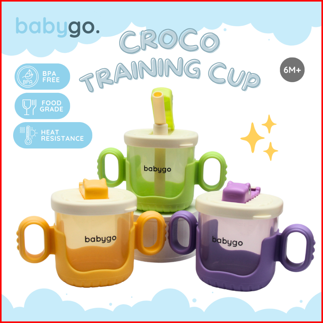 Babygo Training Cup Croco Series - Gelas Minum Anak Bayi Dan Balita - Botol Minum Anak - Straw Training Mug - Traveling