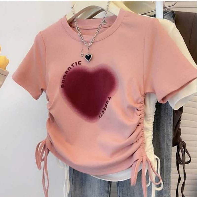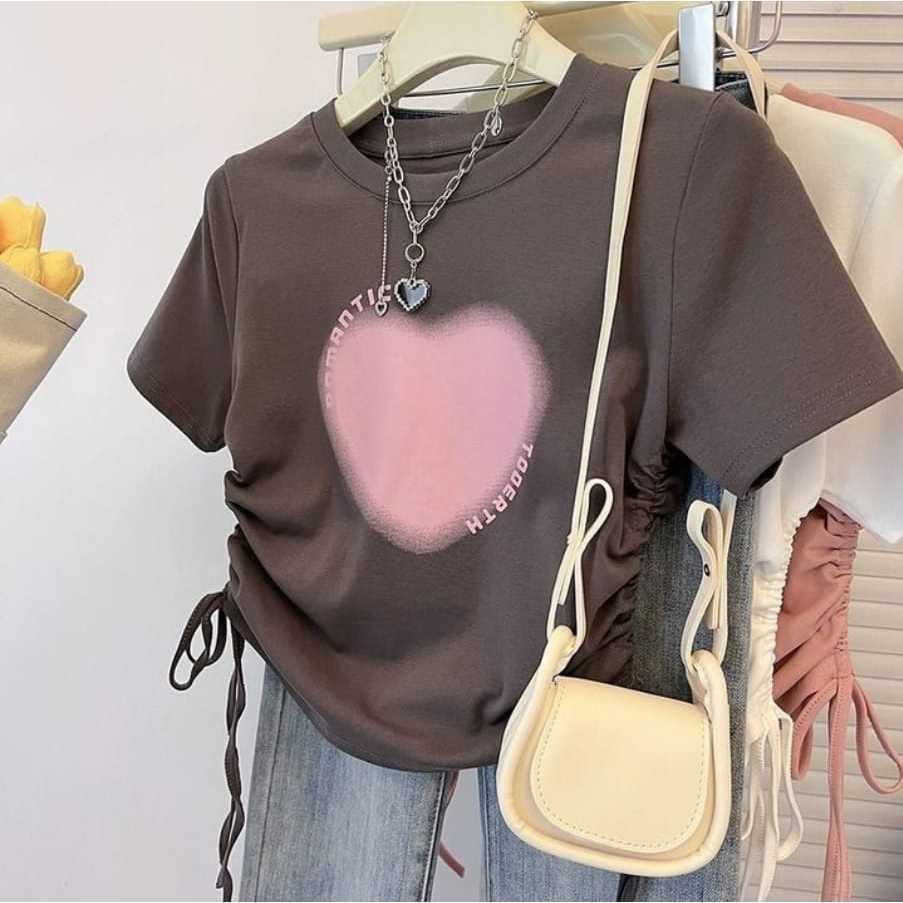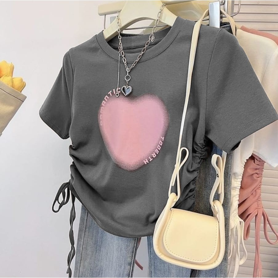TSHIRT ROMANTIC HEART BAJU SERUT WANITA CROP T0P BAJU KAOS WANITA KEKINIAN