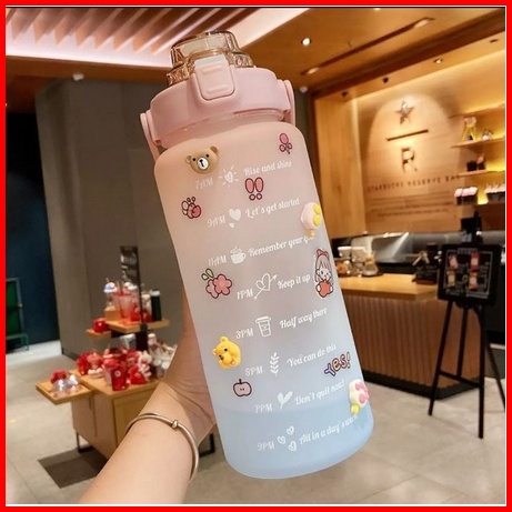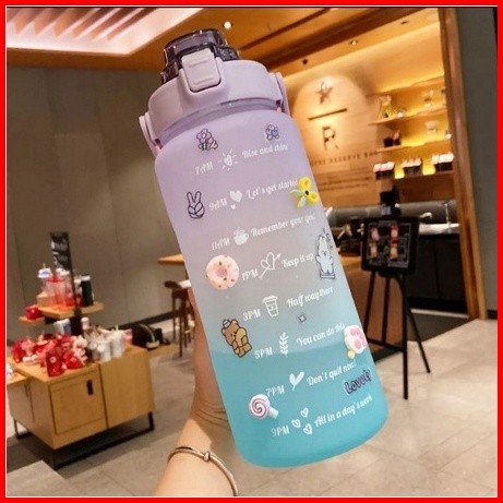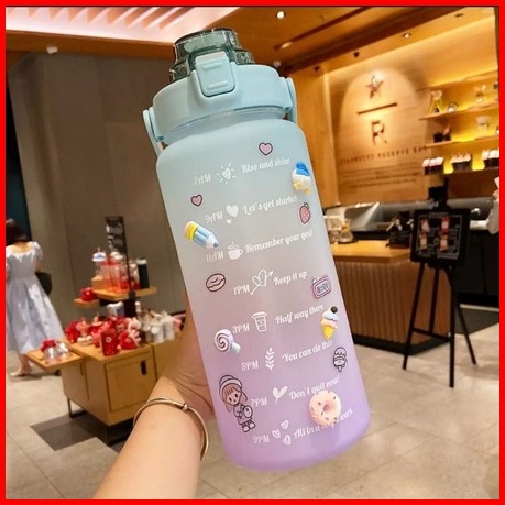 Botol Minum 2 Liter Botol Minum Viral Botol 2000ml Pelangi Botol Minum Motivasi Free 2d 3d Sticker