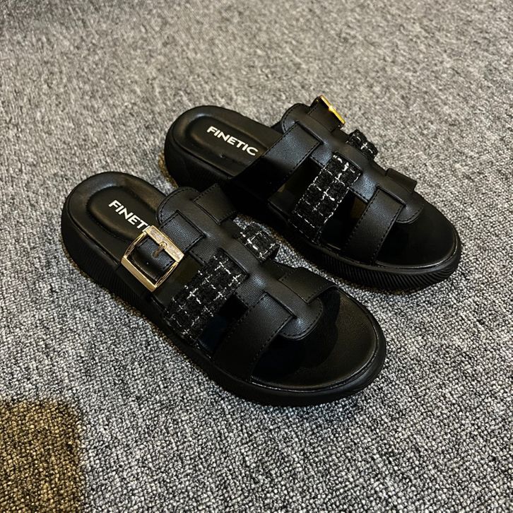 SANDAL SLOP WANITA HAK TINGGI 3 CM PLATFORM RAJUT WEDGES UKURAN 37 SAMPAI 40