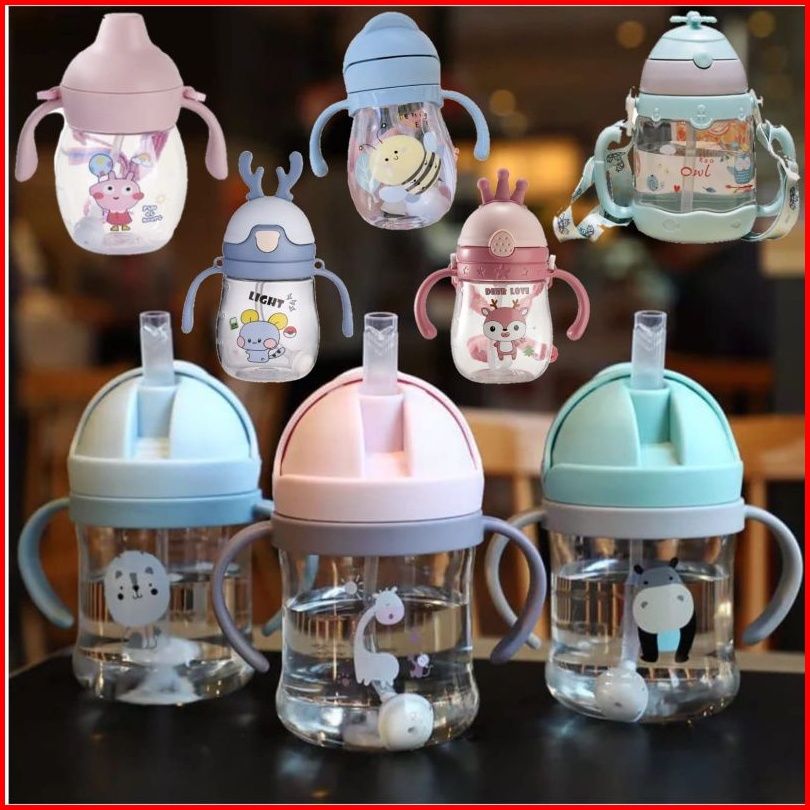 Botol Minum Anak Bayi Balita Sippy Baby Training Cup Gelas Susu Karakter Selang Sedotan Tali Gravity Ball Anti Kolik Bpa
