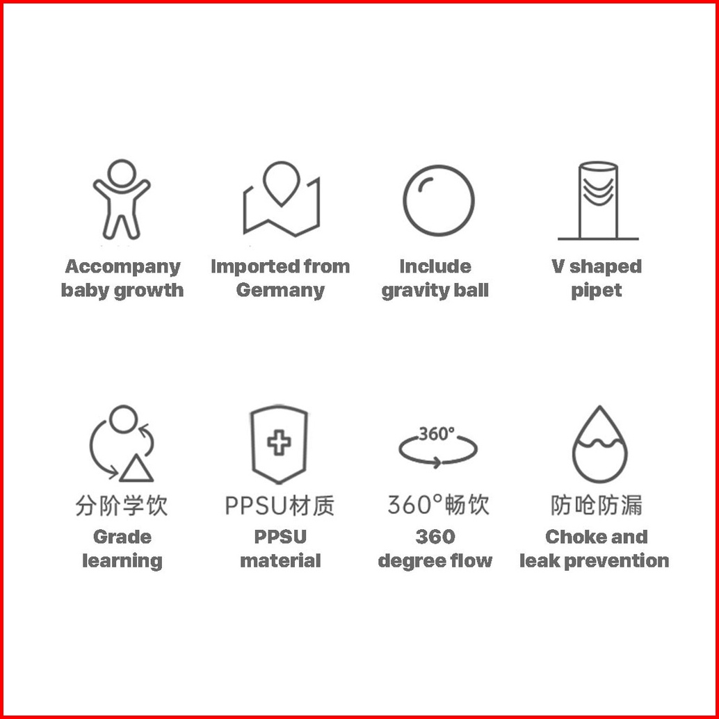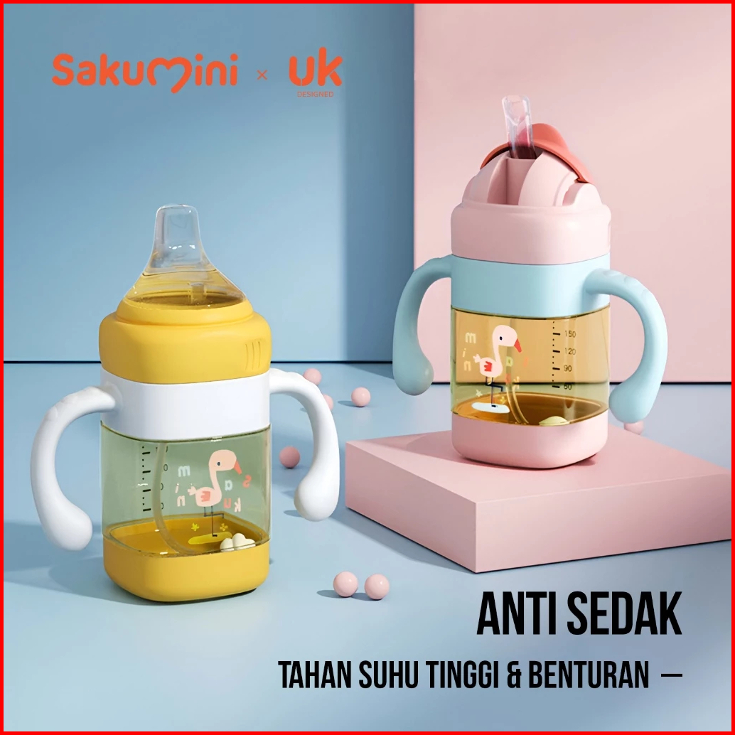 Sakumini Baby Botol Minum Sedotan Training Ppsu 240ml Straw Cup