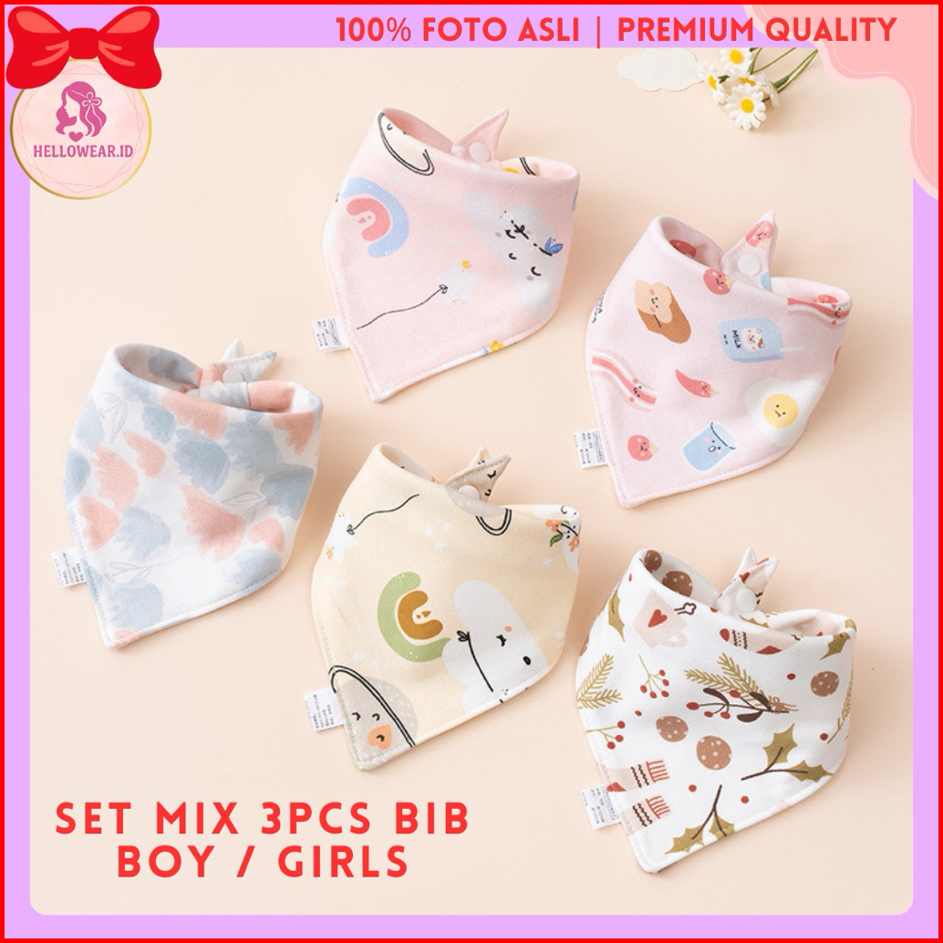 3 Pcs Premium Bib Segitiga Cotton Tencel Bamboo Lembut Slabber Bayi Import Celemek Aesthetic Cute