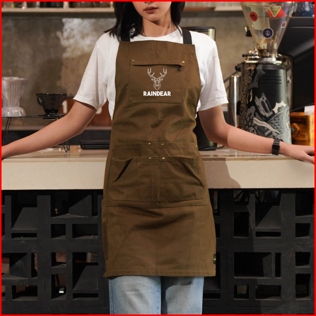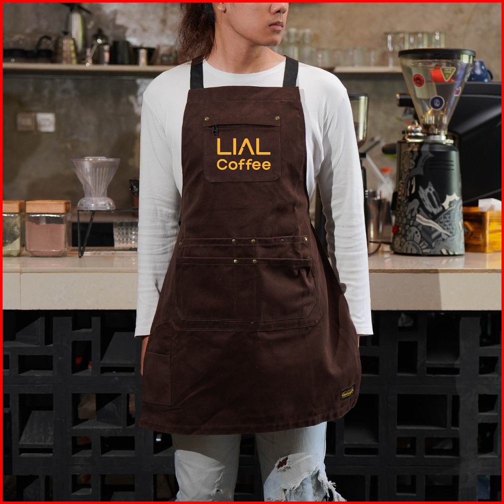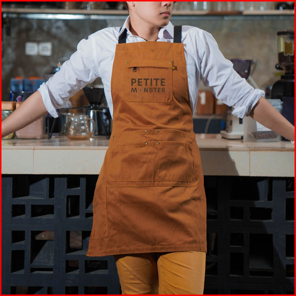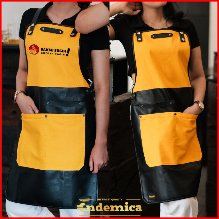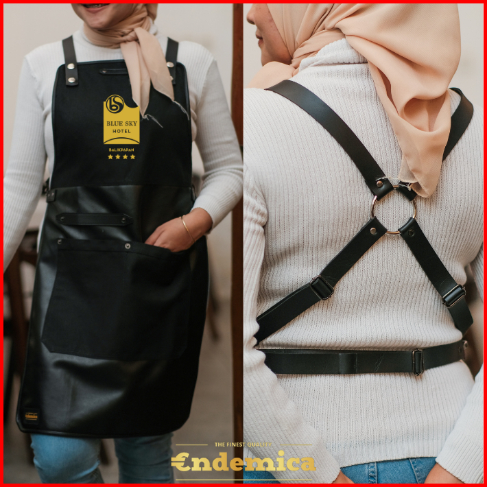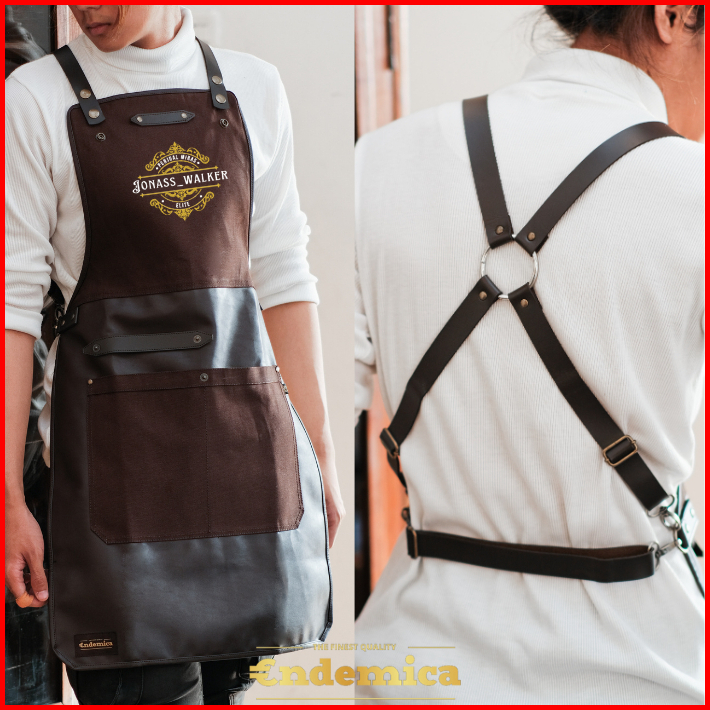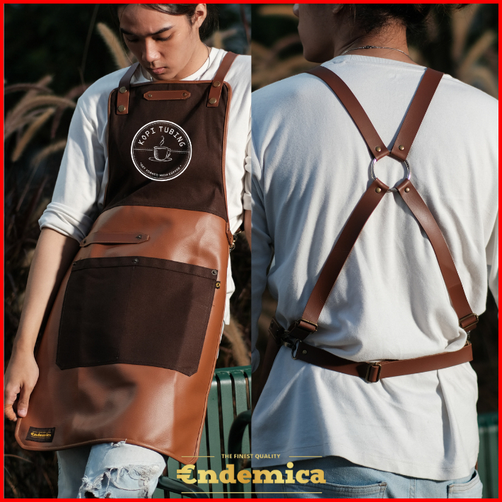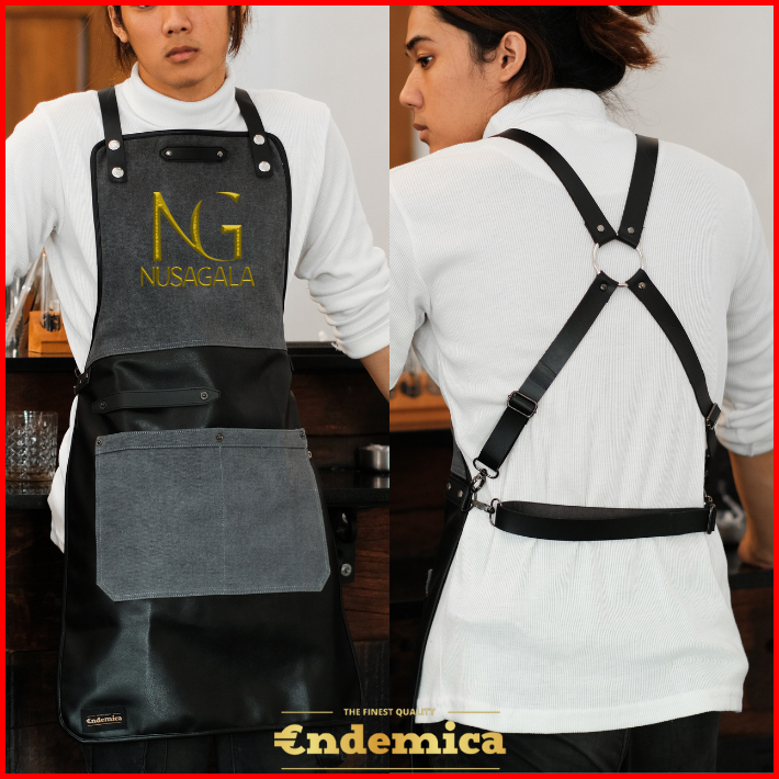 Apron Barista Celemek Barbershop Celemek Koki Masak Kombinasi Kanvas Tebal Dan Premium Syntethic Leather