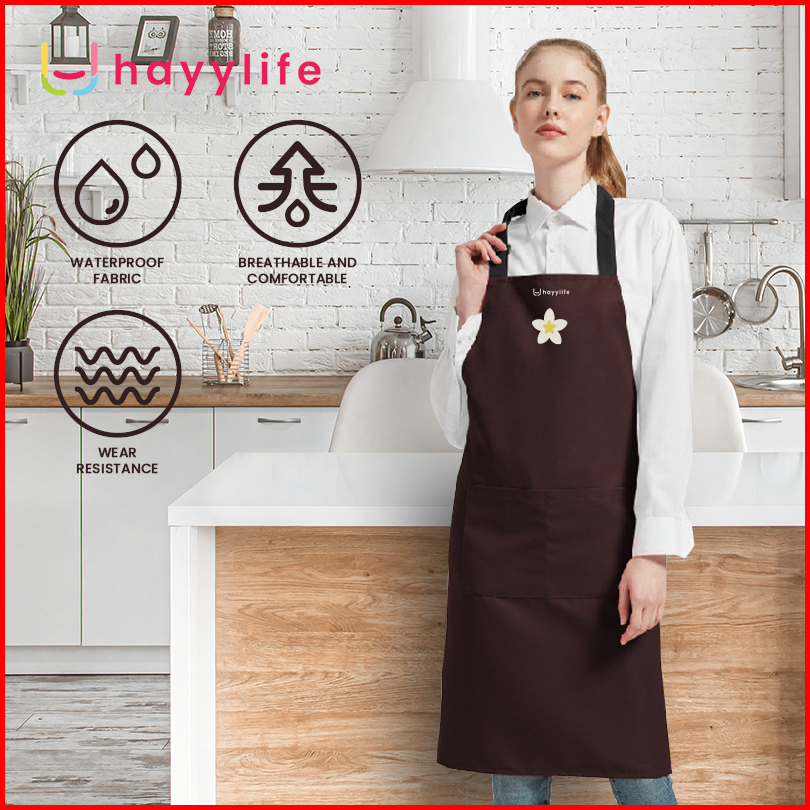 Hayylife - Apron Motif Bunga Tahan Air-apron Tahan Minyak Dapur-apron Polos Tahan Noda Hl-aba889