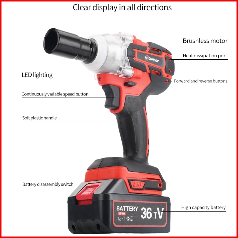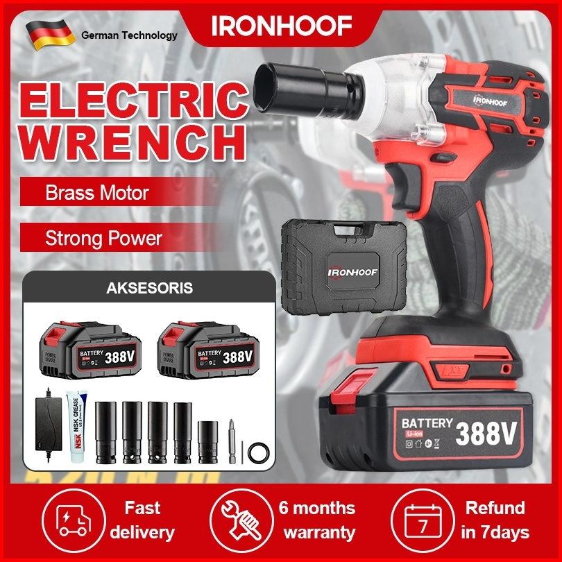 Ironhoof Impact Wrench 388v Impact Baterai 288v Brushless 420n.m Electric Impact Wrench Spanner Sets