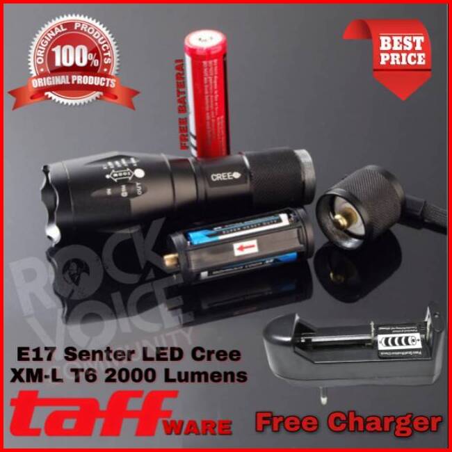 Paket Senter Police Swat Led Cree E17 Xm-l T6 2000 Tactical Taffware