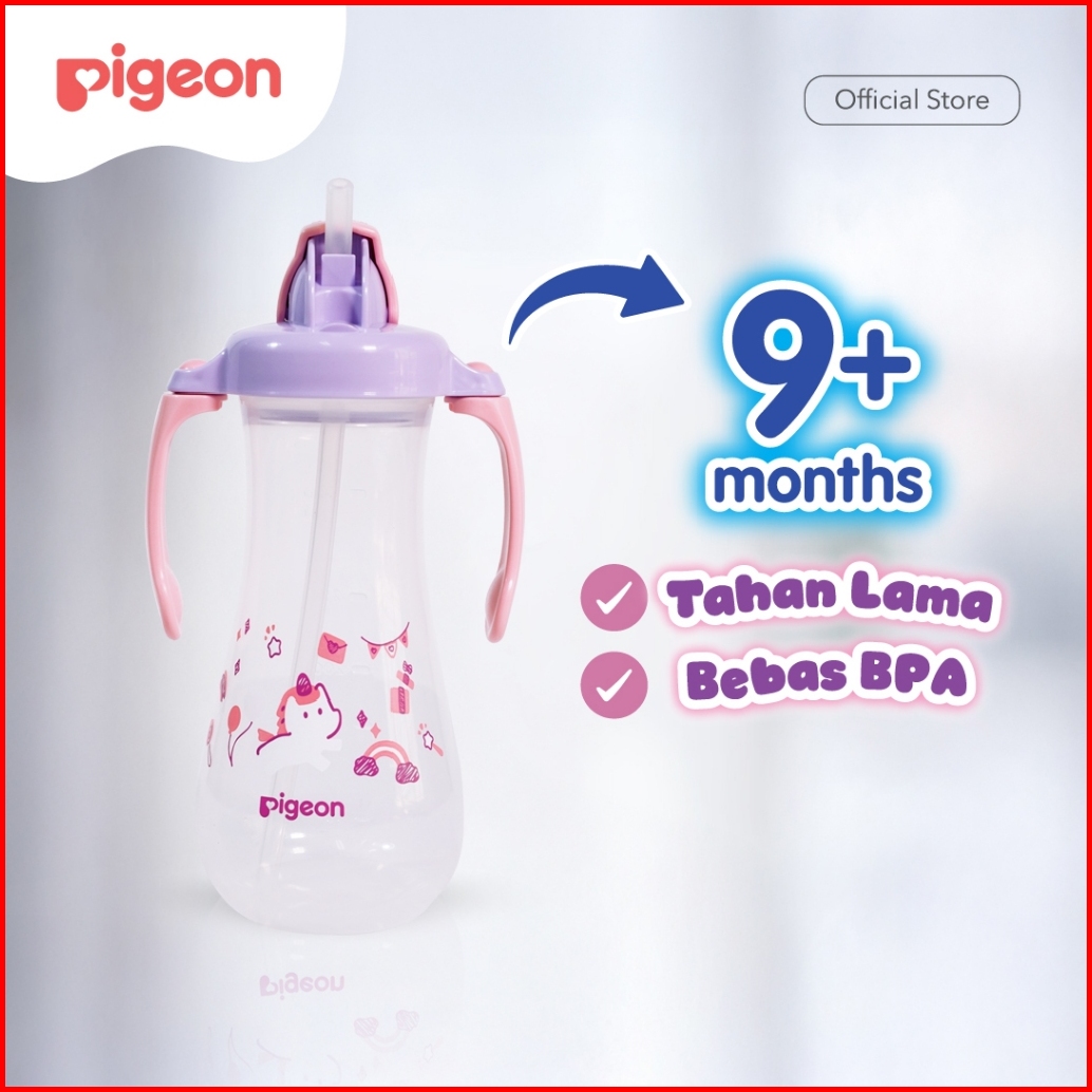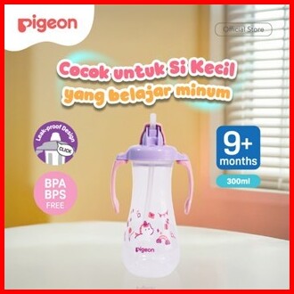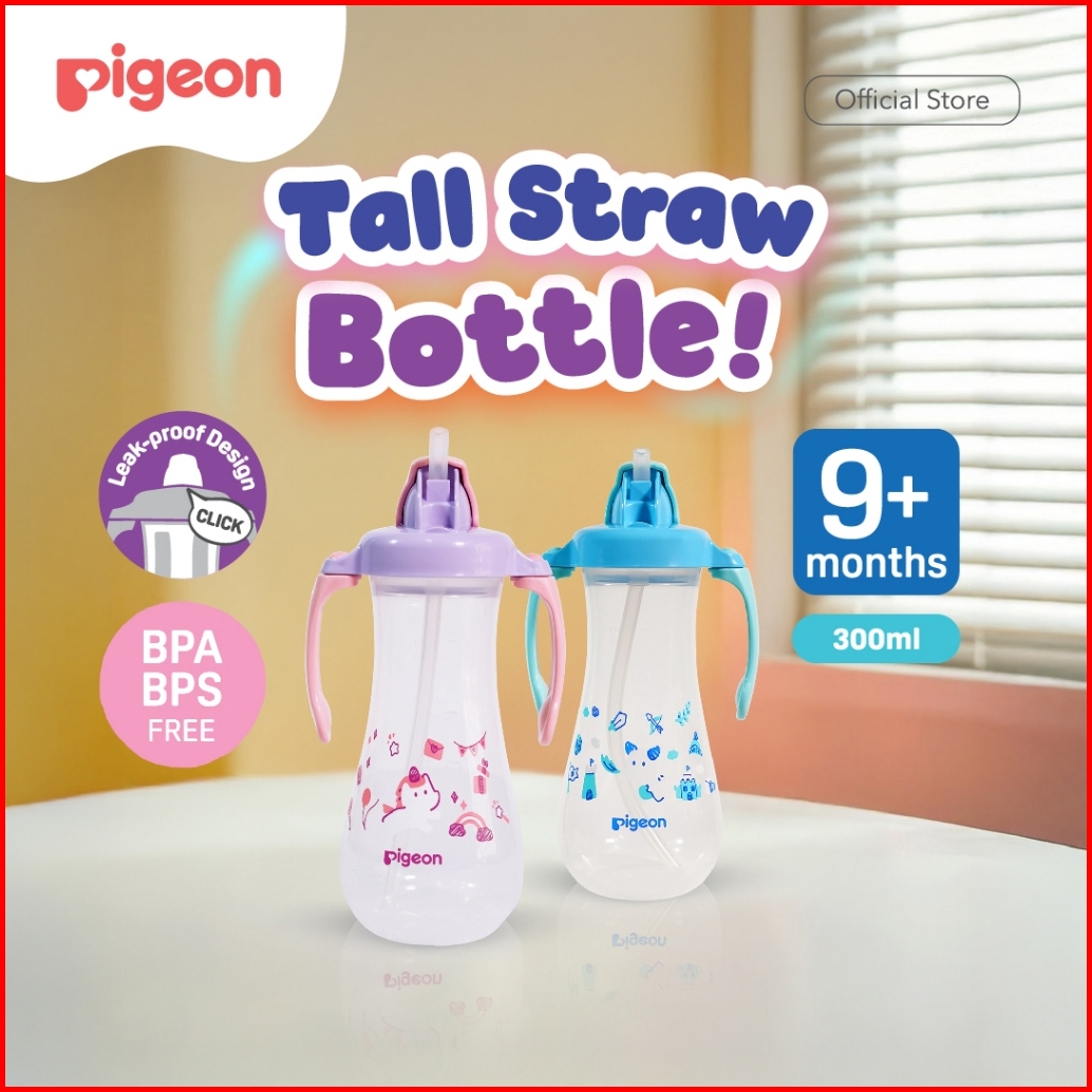Pigeon Tall Straw Bottle - 300 Ml Botol Minum Bayi Anak Sedotan Botol Minum Anti Tumpah 9 Bulan Bpa Free