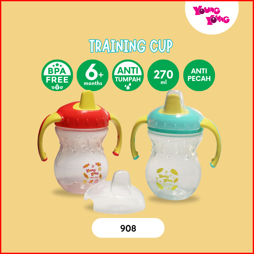 Young Young Botol Minum Bayi Dengan Pegangan 270 Ml Bpa Free Training Cup Sippy 908